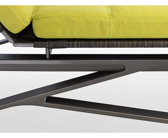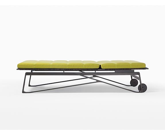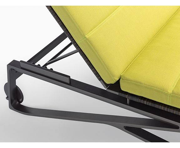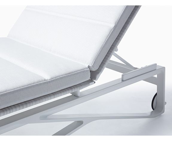 Шезлонг, который подходит к любому случаю. Легкая изысканность определяет шезлонг Moray с металлической рамой на колесах и регулируемым наклоном спинки. Гладкая сегментированная подушка добавляет синкопа к своему приятному визуальному ритму.