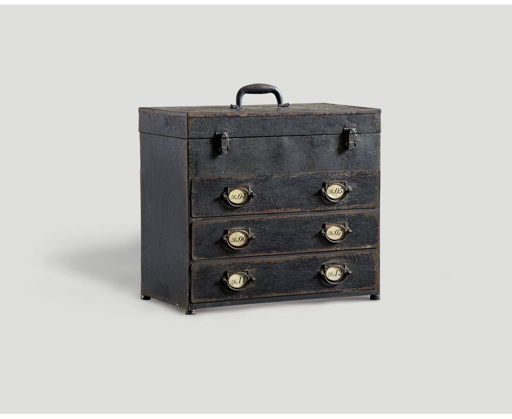 Valigia/cassettiera, con 3 cassetti e un vano apribile in metallo finitura Nero decapato