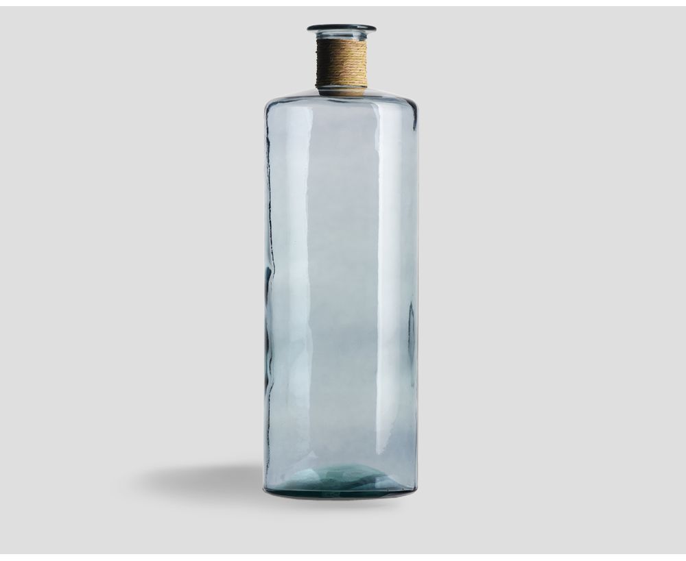 Vaso in vetro riciclato color Acquamarina con fasciatura in corda