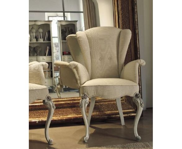 Кресло Capri/L 1314 выполнено в классическом стиле на каркасе, изготовленном из массива древесины. Утонченные передние ножки кабриоли окрашены в благородный серебряный цвет, задние слегка изогнутые ножки придают обманчивый вид неустойчивости. Высокая мягкая спинка с ушками украшена двумя пуговицами. Мягкие подлокотники с завитками. Кресло обито текстильной обивкой.