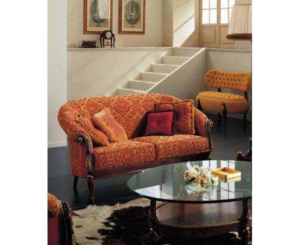 Диван Circe oro 1202 выполнен в классическом стиле на каркасе, изготовленном из массива бука. Утонченные ножки кабриоли окрашены в темный цвет. Невысокая мягкая закругленная спинка плавно переходит в подлокотники, которые украшены деревянным фигурным элементом. Сиденье состоит из двух подушек. В качестве обивки использована ткань с набивным рисунком.