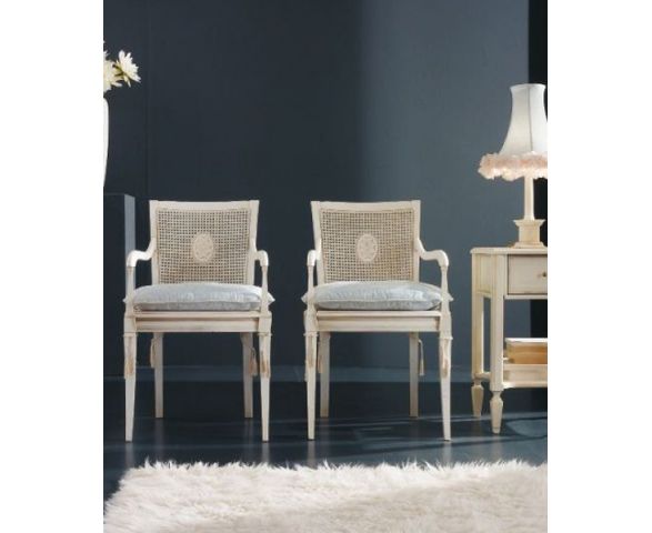 Кресло Danubio 2081 выполнено в классическом стиле на каркасе, изготовленном из массива бука. Аккуратные тонкие ножки. Спинка без мягких вставок декорирована венским узором и медальоном в центре. Тонкие изогнутые подлокотники без мягких вставок. Сиденье дополнено мягкими подушками, закрепленными тонкими веревочками.