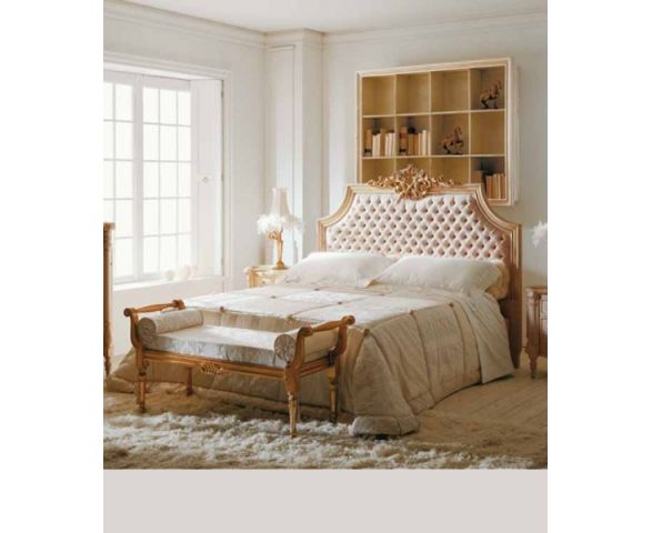 Двуспальная кровать Proposta 11 заключает в себе классические традиции, воплощенные по - королевски. Каркас изготовлен из массива древесины. Короткие фигурные ножки, окрашены в светлый цвет. Высокое прямоугольное изголовье со срезанными и вогнутыми углами украшено стежкой капитоне и деревянной рамой с резным цветочным орнаментом на верху, окрашенным в золотой цвет. Кровать выполнена в текстильной обивке.