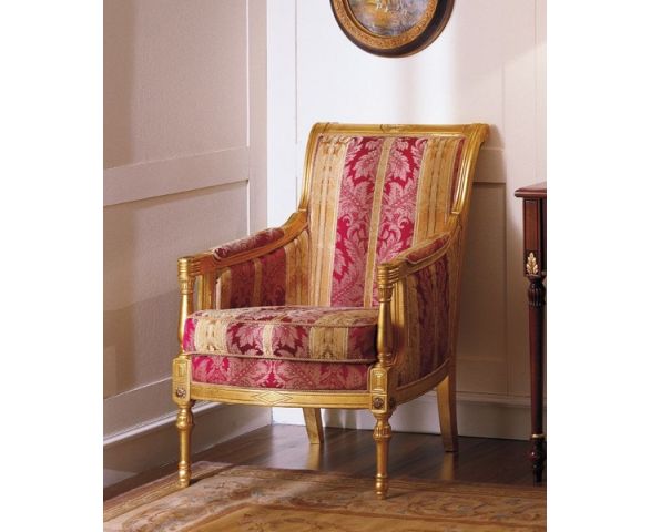 Кресло Savoia 0850 выполнено в классическом стиле на каркасе, изготовленном из массива бука. Фигурные резные ножки с резными элементами, окрашенными в золотой цвет. Высокая мягкая спинка обрамлена деревянной рамой с резными декоративными элементами, окрашенными в золотой цвет. Мягкое сиденье состоит из одной подушки незакрепленной на каркасе. В качестве обивки использована ткань с рисунком. Подлокотники с мягкими вставками украшены деревянными элементами.