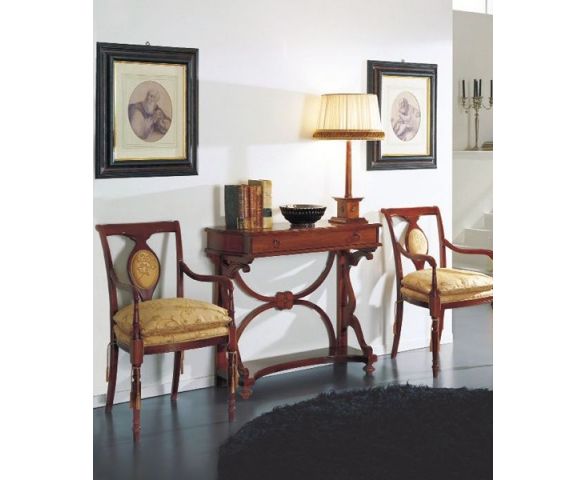 Кресло Vittoria 2052 выполнено в классическом стиле на каркасе, изготовленном из массива бука. Утонченные резные фигурные ножки. Невысокая спинка с мягкой декоративной вставкой в центре. Мягкое сиденье дополнено еще одной подушкой для большего комфорта, крепящейся на завязках. В качестве обивки использована ткань с рисунком. Фигурные подлокотники без мягких вставок.