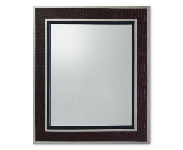 Это элегантное зеркало обрамлено черной искусственной крокодиловой кожей и отделкой из нержавеющей стали.