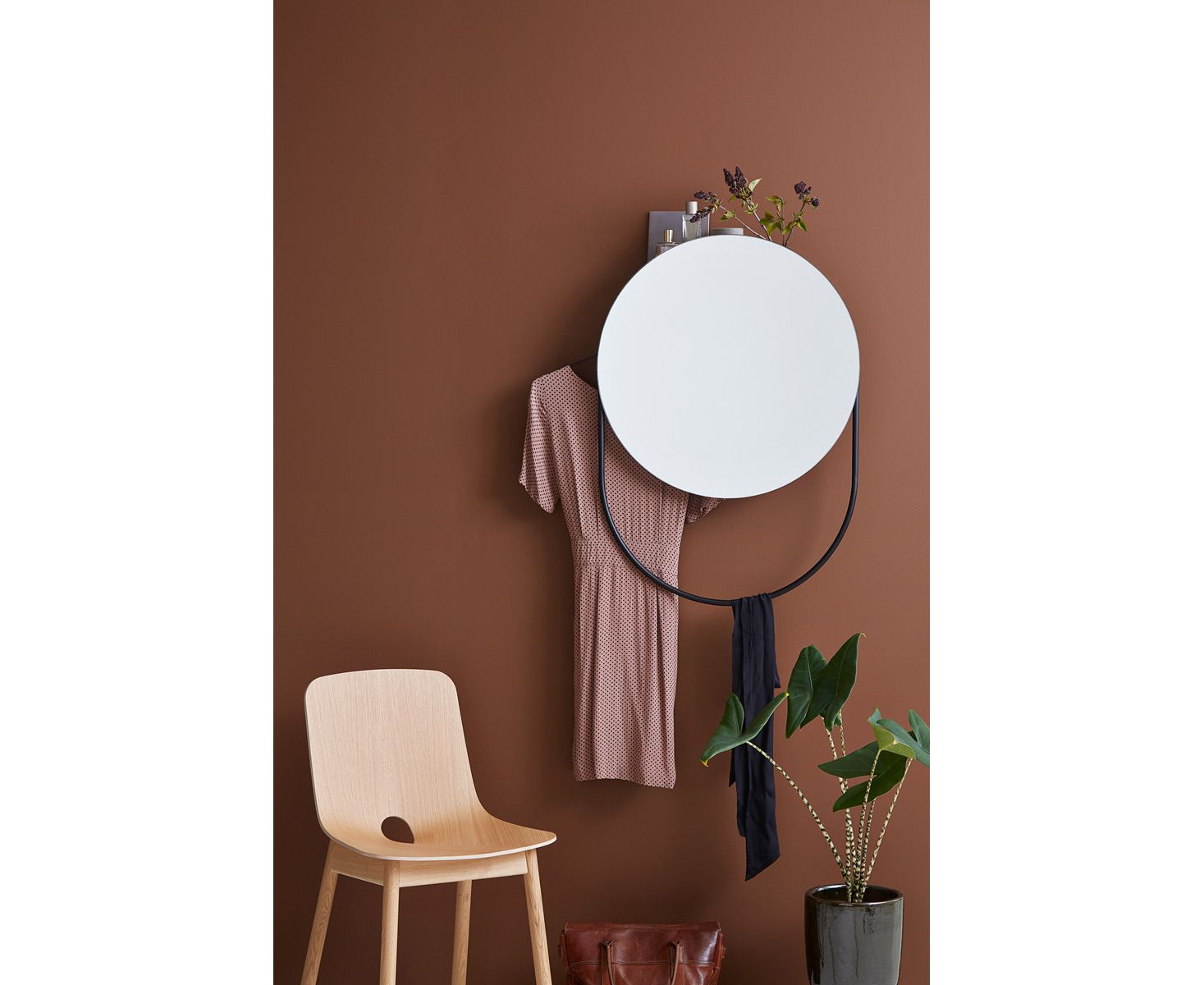 Verde Mirror - это многофункциональный дизайн с плавными изгибами и чистыми линиями. Вдохновленный металлической мебелью 1950-х годов, дизайн сочетает в себе простые формы с функциональной перспективой. Зеркало удивительно универсально и предназначено для различных помещений, таких как прихожая или спальня. За зеркалом спрятана небольшая полочка с прорезями для вешалок, предназначенная для размещения растений и цветов в вашем доме и для вешания одежды по бокам. Используйте подвесную раму, чтобы повесить одежду или шарфы.