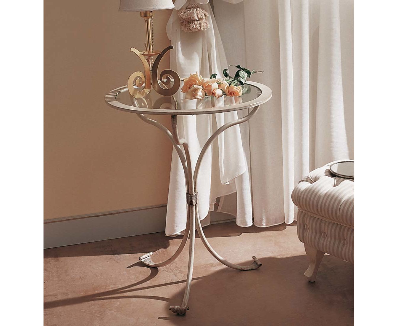 Небольшой и элегантный журнальный стол, выполненный в классическом стиле. Столешница сделана из стекла, а каркас из прочного металла. Прекрасно подойдет не только для спальни, но и для гостиной. Станет украшением любого интерьера.
