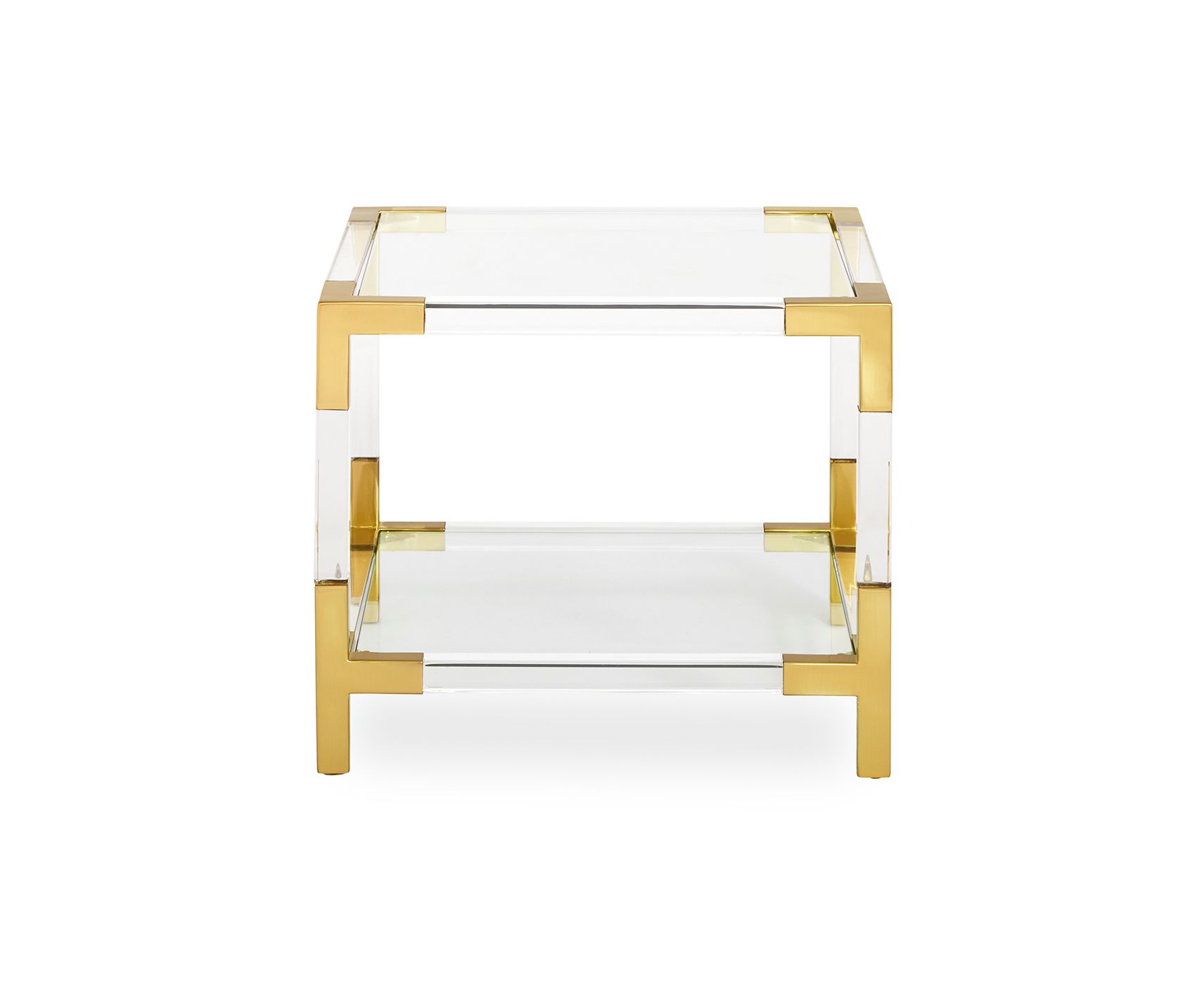 Коллекция Jacques - это идеальное сочетание простоты и гламура, современного и традиционного. Низкий и уютный, Jacques Two-Tier Accent Table столик доступен в роскошном прозрачном акриле с акцентами из матовой латуни или полированного никеля. Это также потрясающе, как щедрый конец стола. Большое присутствие, невесомый прозрачный.