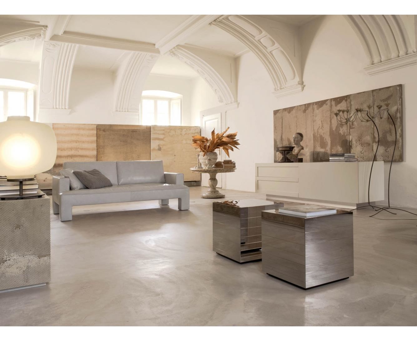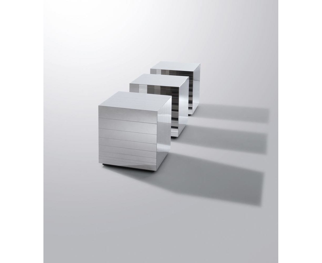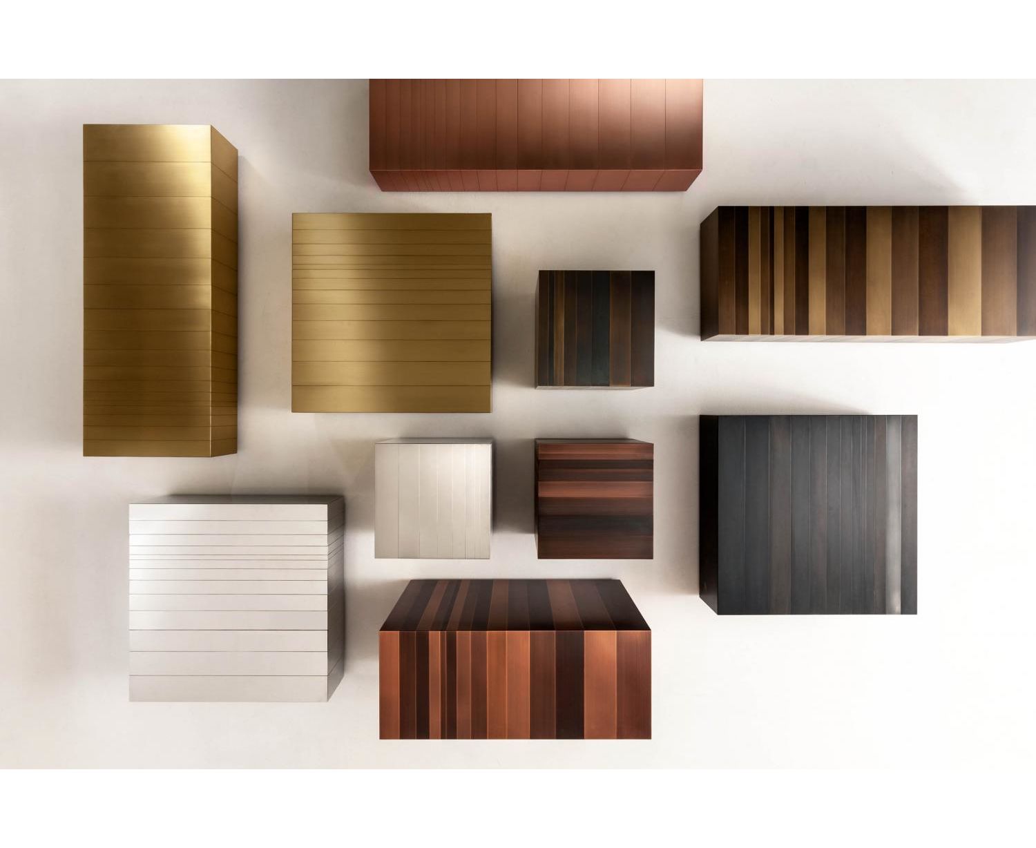 Комплект низких столиков Stars, полностью покрытых металлом: латунью, медью, сталью или железом. Эти столики, доступные в квадратной, прямоугольной большого и маленького размеров и кубической форме, являются результатом, отвечающим необходимости создания современного изделия.