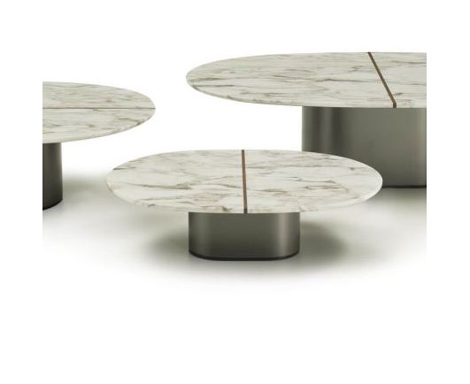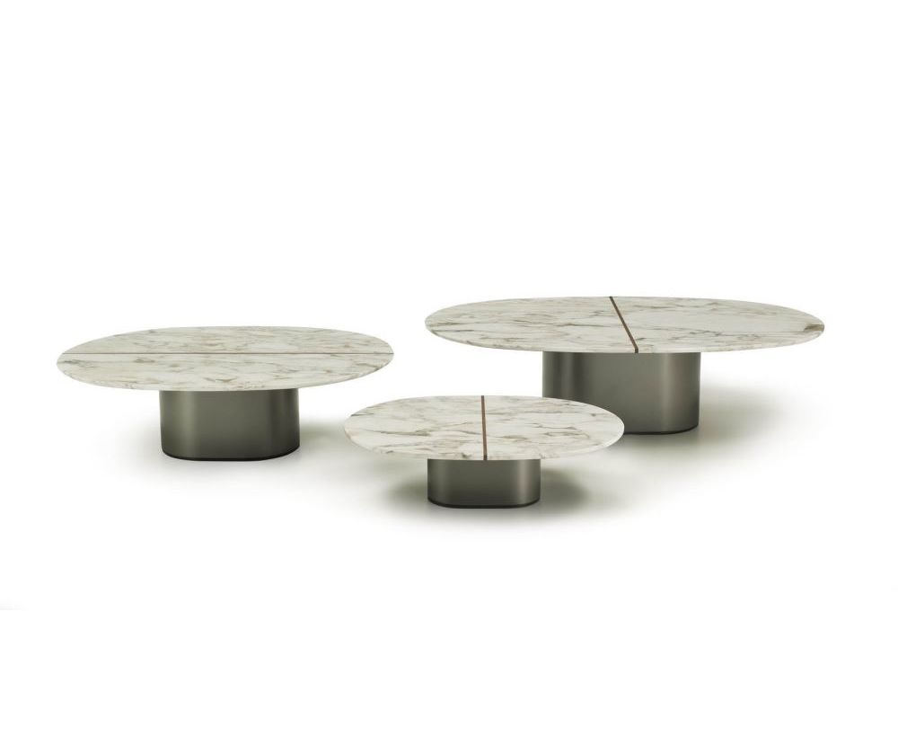 Предложение о продаже небольших аксессуаров дома бесплатно называется Giotto. Три овальных журнальных столика с различными размерами и высотой и с мраморной столешницей с обработкой половинной тороиды. Основание в лакированной фанере и верхней части может быть выбрано в соответствии с отделкой цвета и камня.