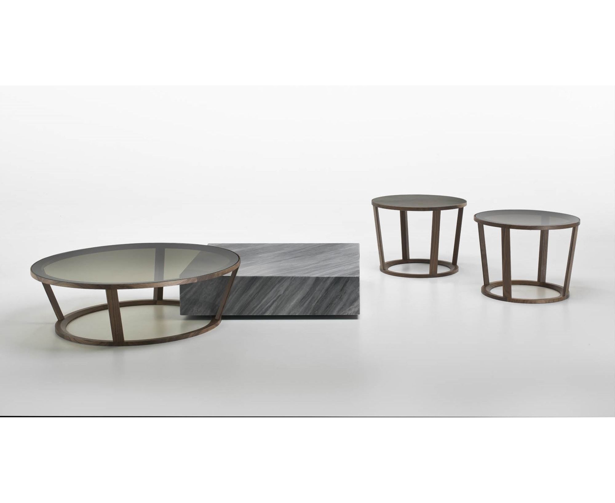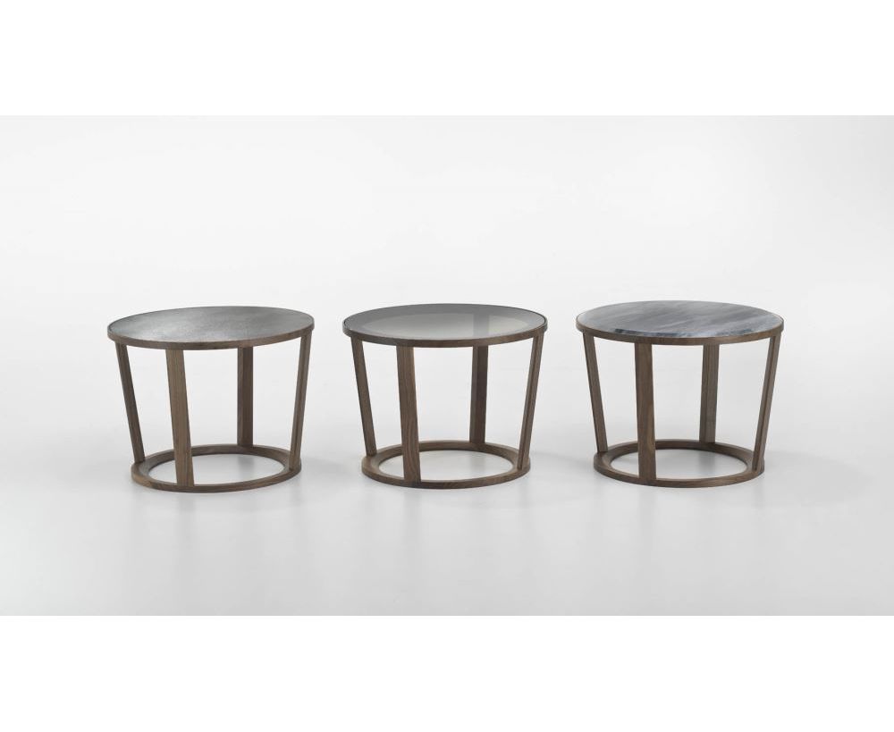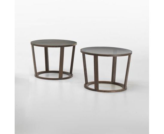Столики выполнены из массива черного ореха со столешницей из мрамора бардильё, мягкой кожи, шорно-седельной кожи или бронзированного стекла. Имеется также небольшой стол из мраморного монолита бардильё. Все столики предоставляются по запросу также из всех других имеющихся в коллекции видов мрамора.