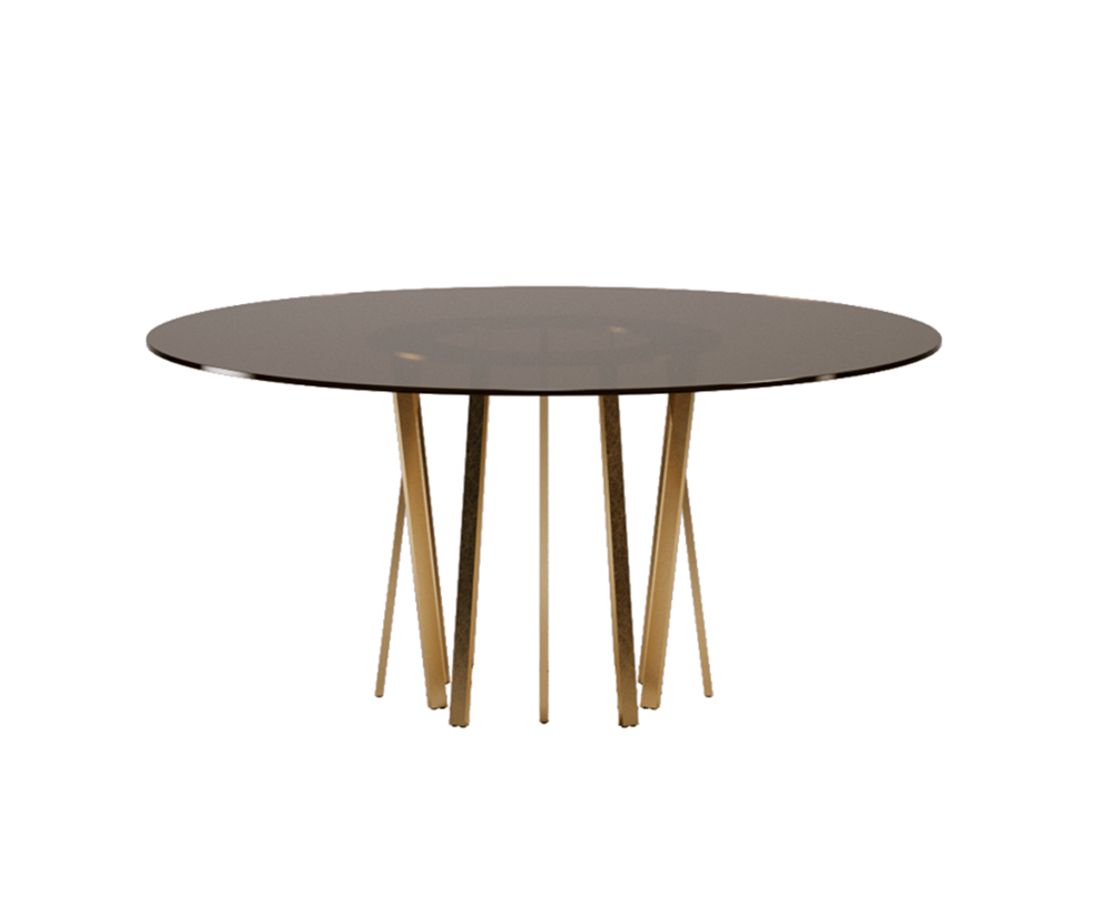 Круглый стол For Hall - материальный и драгоценный - это стол, способный создать роскошную атмосферу в той обстановке, в которой он находится, будь то вход или столовая. Он сделан с круглой стеклянной столешницей, доступной в лакированной задней части с Ral 8019 коричневого цвета или из прозрачного стекла Гаванского цвета. Основание состоит из 12 металлических ножек с гальванической отделкой из благородного матового золота, расположенных с различными углами наклона. Толщина топа 1,2 см.