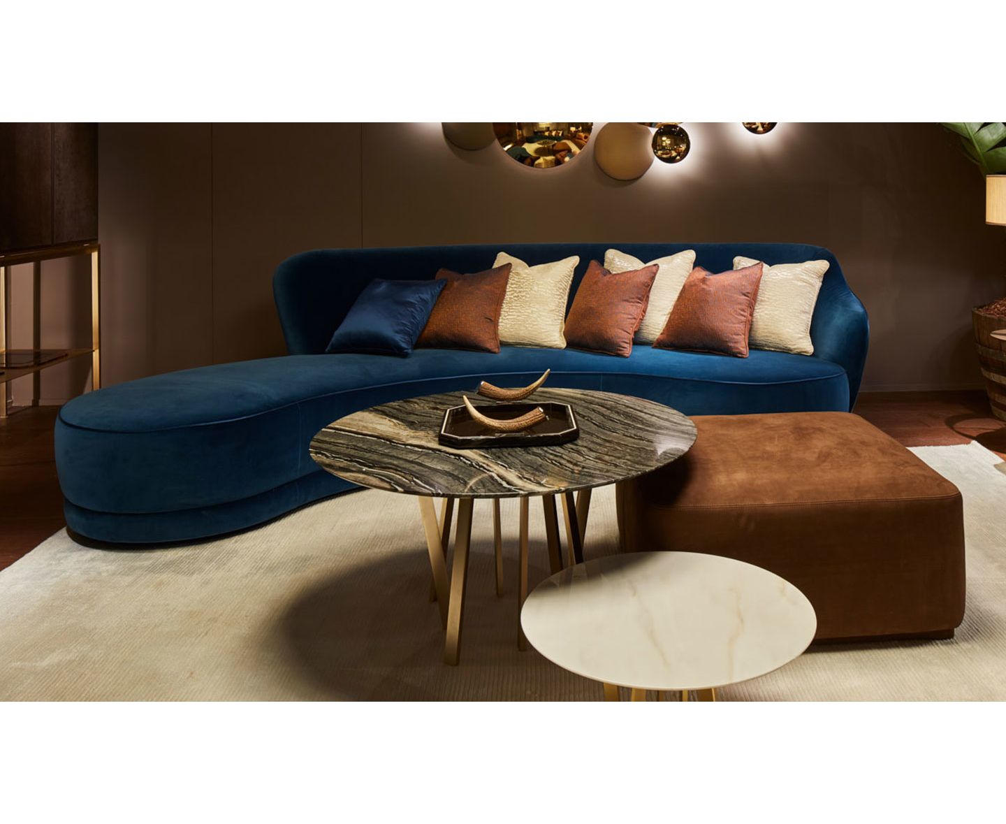 Журнальные столики For Hall - это серия оригинальных и элегантных низких столиков, идеально подходящих для обустройства жилых помещений в сочетании с другими элементами. Верх выполнен из мрамора, а основание имеет металлические ножки с гальваническим покрытием из матового золота.