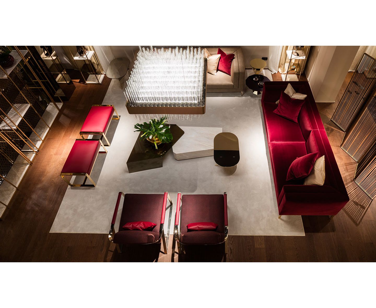 IMPERFECT METAL - Журнальный столик, изготовленный из 3 стальных листов толщиной 8 мм, расположенных в зацеплении, с глянцевой позолотой