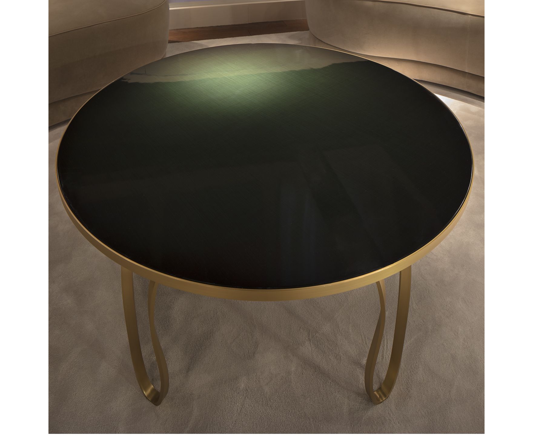 Симфония волнистых линий из матовой лакированной латуни с лакированным верхом из мдф с отделкой Saffiano или мраморным верхом в Black Sahara. Журнальные столики Ribbon сконструированы в качестве элементов обслуживания в жилой зоне, в то время как они легко адаптируются к различным контекстам благодаря своей размеренной элегантности и множеству доступных форм и высот.