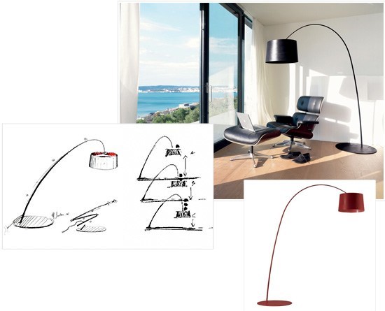 Итальянский дизайнер Мишель де Лукки долгое время полагался на надежную офисную лампу Naska Lora, но был настроен создать свою собственную для использования над своей чертежной доской. Вдохновленный требушетами, используемыми рыбаком для маневрирования подъемами и опусканиями канатов рыболовных сетей, де Лукки разработал пружинный механизм, скрытый в трубе и управляемый небольшим кабелем.