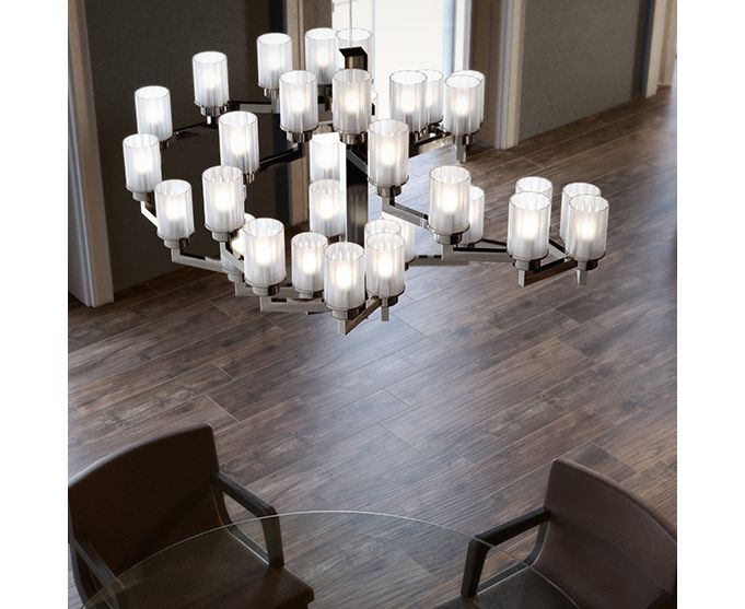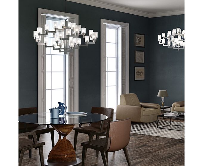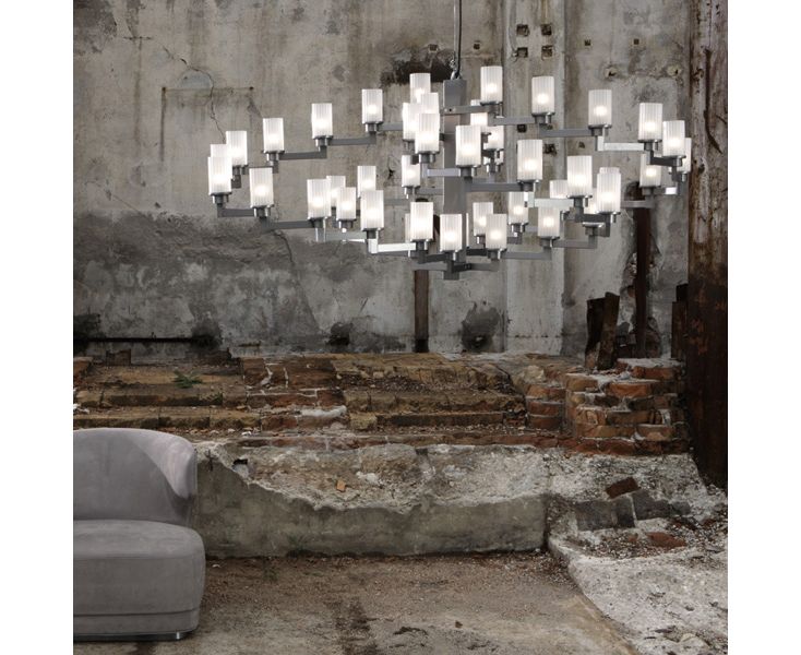 Подвесной светильник с большими размерами, подходит для просторных помещений, выполненных в современном стиле. Эта модель сочетает в себе металл и стекло, соединяя их в единое целое, чтобы получить лучшее.