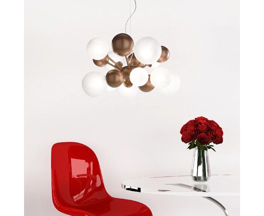 Подвесной светильник состоящий из множества нанизанных на основание шариков разного диаметра и цвета. Благодаря этому создается эффект движения, свет становится живым и динамичным.