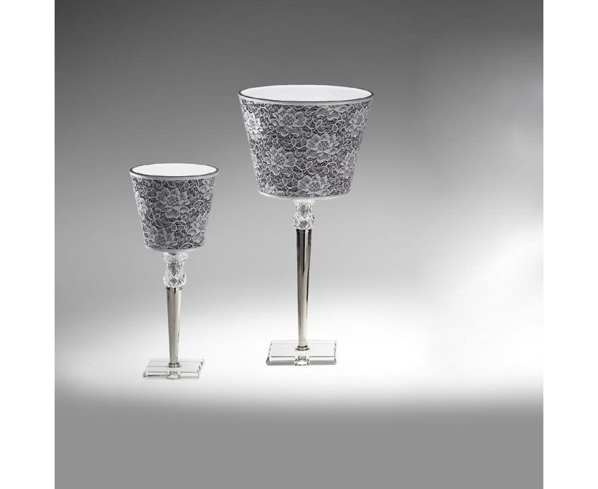 Настольная лампа, выполненная в современном классическом стиле. Особого внимания заслуживает абажур, его перевернутое расположение сделано специально, чтобы придать такой строгой лапме более игривый вид. Абажур украшен нежным цветочным узором.