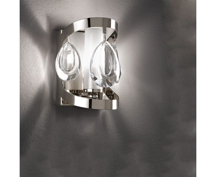 Настенный светильник в современном стиле. В нем есть свой шарм, своя неповторимая изысканность и великолепие. Он притягивает взгляды. Крупные подвески каплевидной формы из стекла служат декоративными элементами, а когда светильник включен они оживают сотнями переливов, создавая игру света и тени.