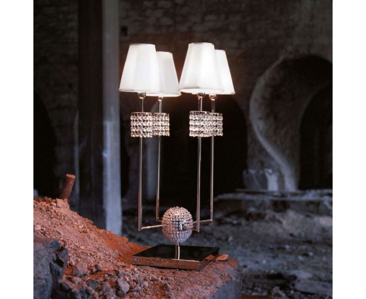Непростая настольная лампа, броский дизайн привлекает внимание, шикарные декоративные элементы из кристаллов Сваровски создают искрящийся блеск и сияние. Светильник украсит любой интерьер.