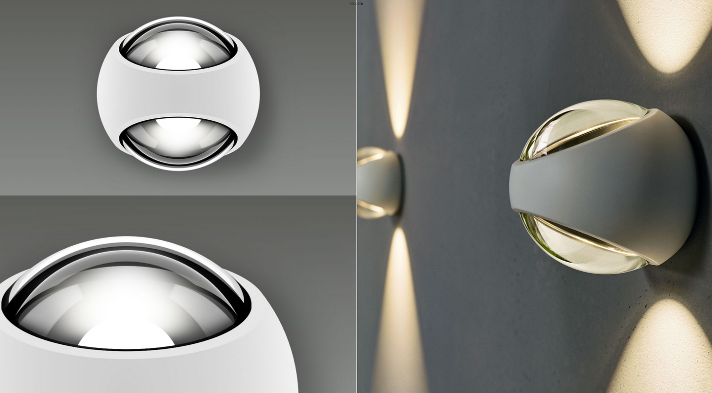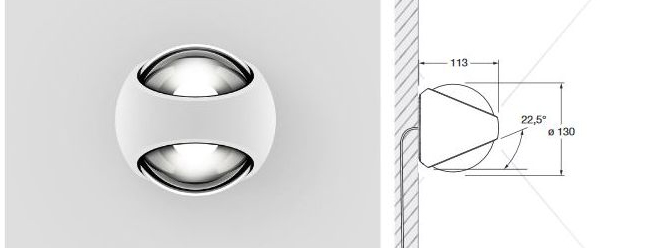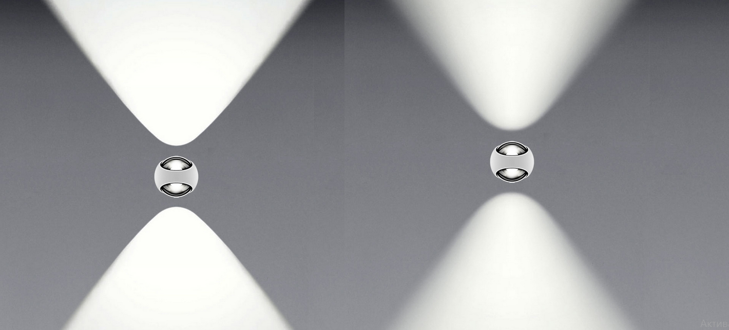 Светодиодный настенный светильник для уличного освещения со сферической головкой и двухсторонней светоотдачей.