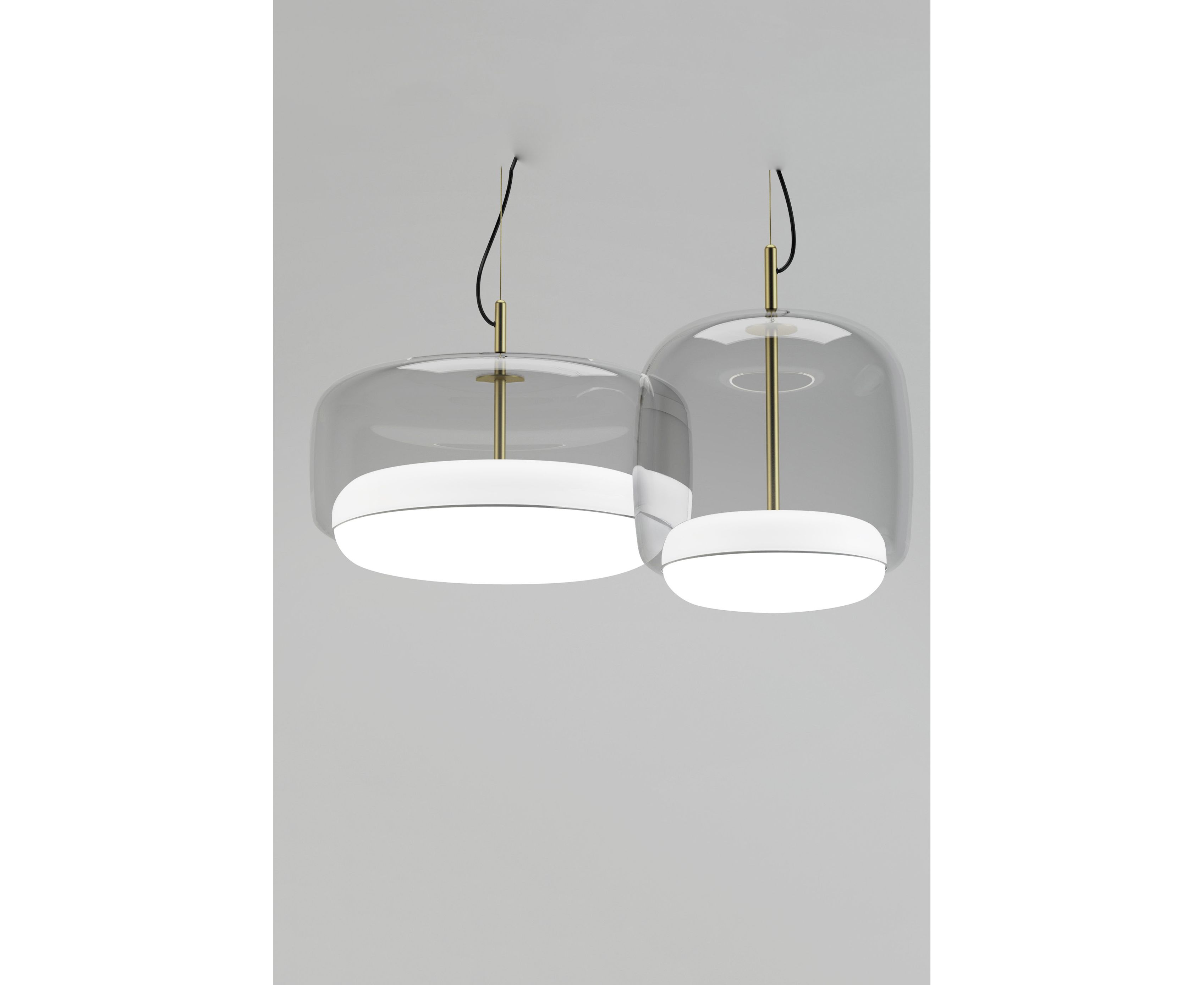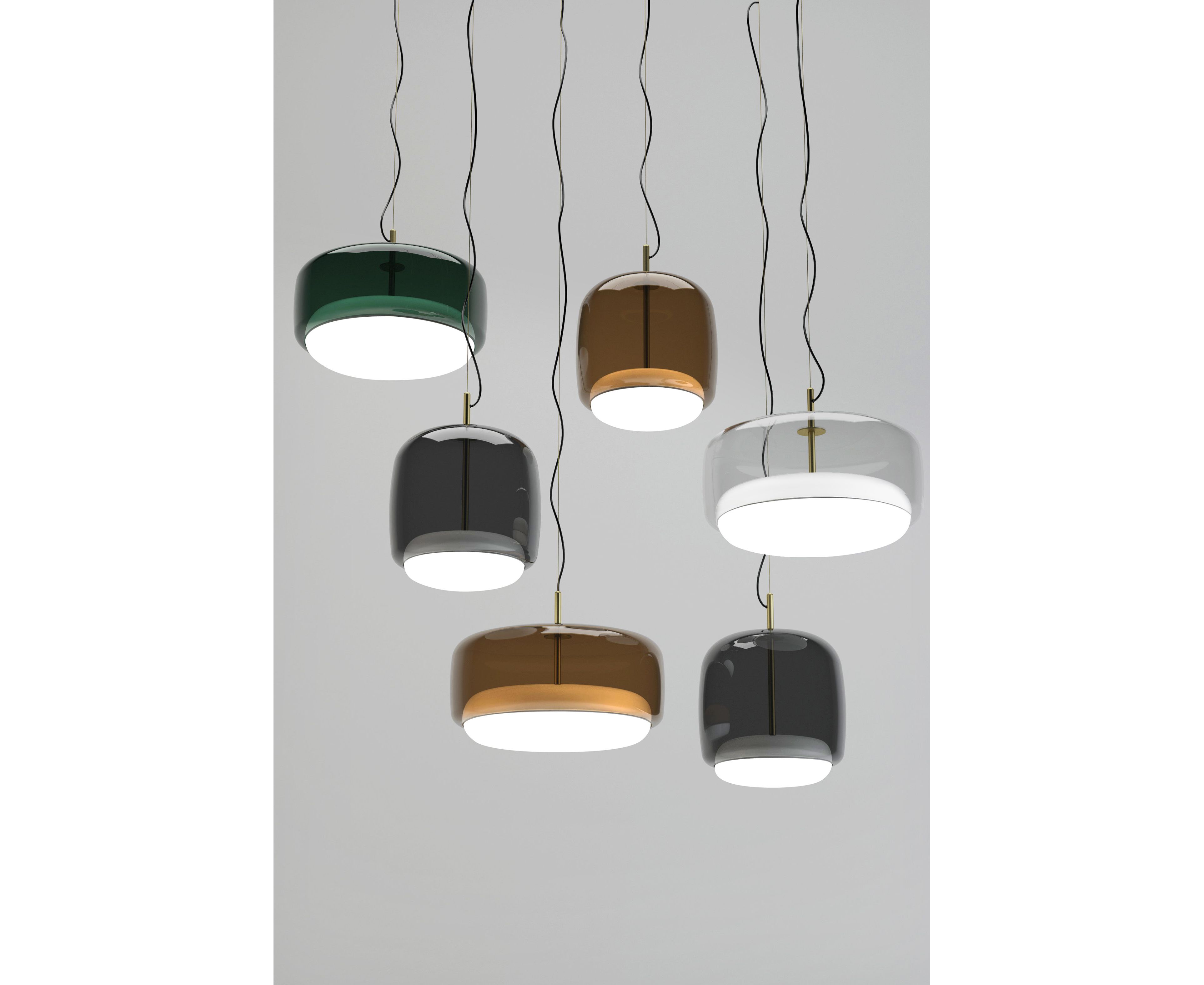 Неотъемлемый, извилистый и деликатный, JUBE родился от объединения двух выдувных стеклянных форм, которые после объединения создают эффект перекрытия, тон-сюр-тон с ретро-шармом. Благодаря мощной гидроабразивной установке, которая пробивает стекло с отверстиями очень большого диаметра, слияние прекрасно выполнено, поэтому два стекла выглядят как единое целое. Нижнее стекло - глянцевое белое, а верхнее - цветное. Светодиодный источник света производит рассеянный яркий свет.