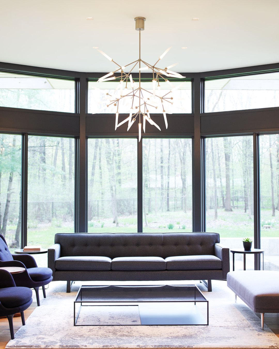 Поскольку люди сидят и собираются в гостиной, добавив подлинно уникальную осветительную установку, которая выглядит так, как искусство в стратегически значимом пространстве может стать стартером беседы, и, если его правильно выбрать, все это еще и свяжет стиль комнаты. Например, у люстры TECH Lighting Spur Chandelier есть 45 отдельных рассеивателей из матового стекла, которые подчеркивают его светодиодные источники света для безошибочного уникального и роскошного вида. И его эстетика прекрасно дополняет современный декор середины века.