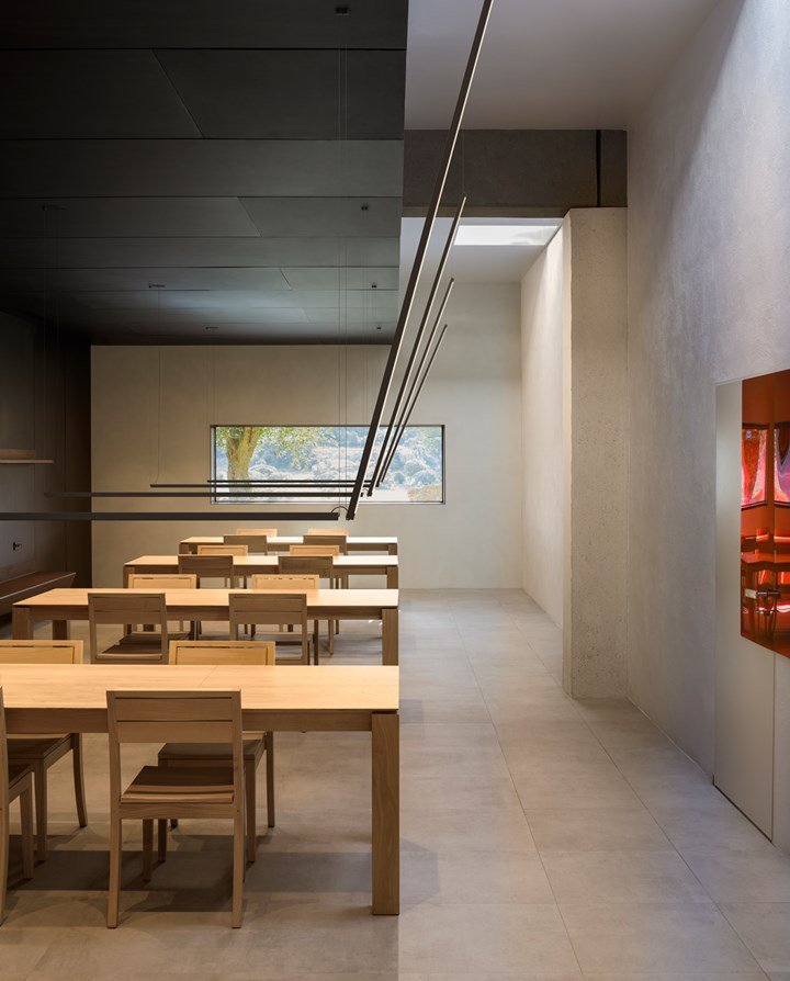 Vibia Sticks также освещают офис с рядом столов. Стержень расположен на одной стороне стола и соединяется с другим, который проходит перпендикулярно стене. Инсталляции содержат и определяют каждый стол с его угловатой архитектурой.