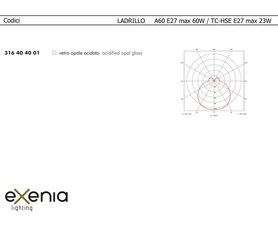 LADRILLO PLAF. IN VETRO 28X28X11CM E27 MAX 2X60W