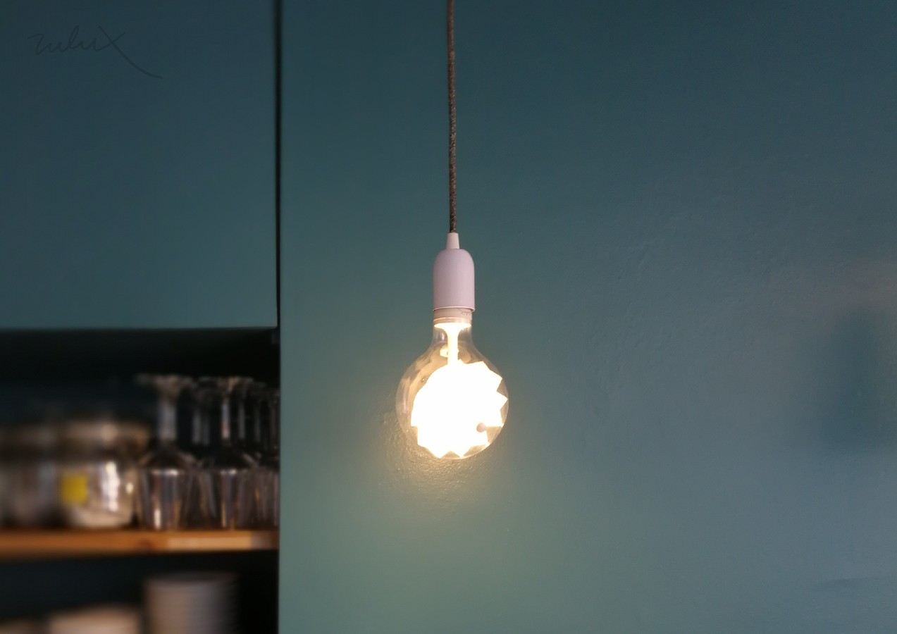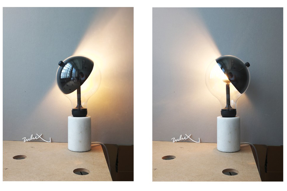 Это очень интересный светильник с точки зрения дизайна. За основу взята обыкновенная лампочка Эдисона, в частности, ее форма. А вот содержание уже доработано. Патрик использовал светодиодный источник света, который можно прикрывать с разными степенями наклона с помощью аккуратного рассеивателя. Отражатель и рассеиватель имеют небольшую ручку, за которую из можно смещать. К радости покупателей, каждый рассеиватель может быть индивидуальным - можно изобразить любую картинку или рисунок на рефлекторе.