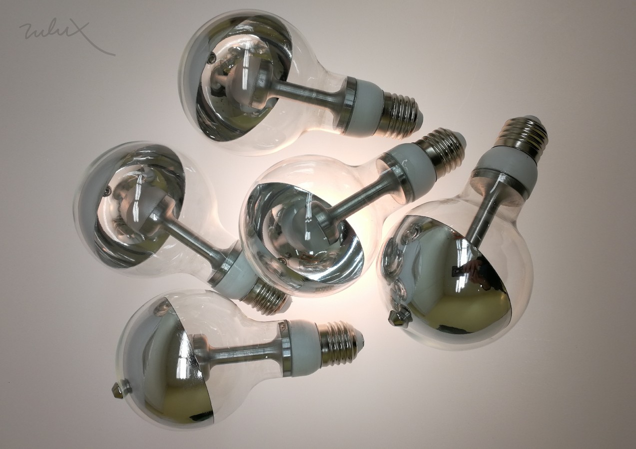 Коллекция ZULUX E27 LED BULP WITH MOVABLE REFLECTOR OR DIFFUSOR представлена лампочками, для которых дизайнер предлагает собственные удерживающие элементы - подвесы, настенные или настольные крепления.