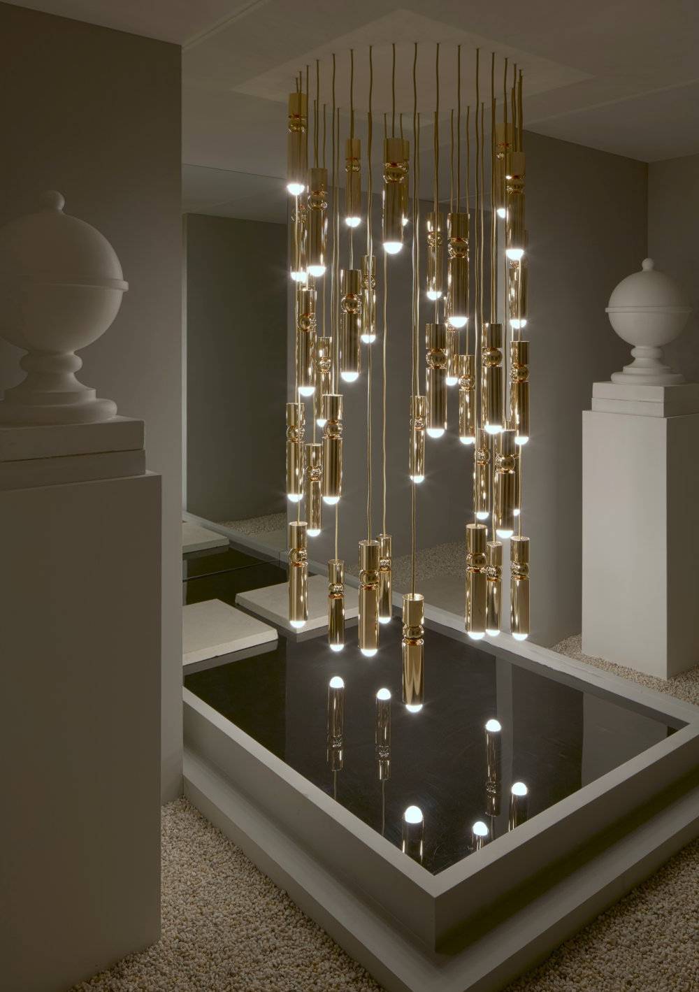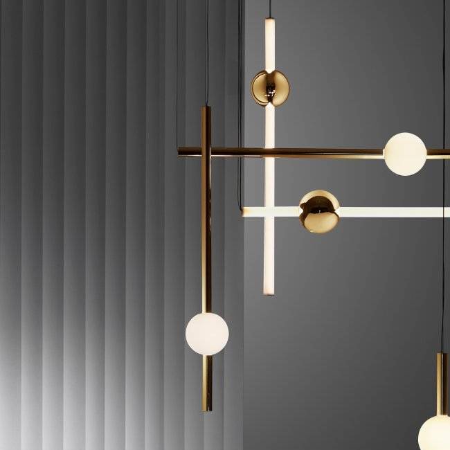 Коллекция «Orion» - это простые модульные светильники с противоположными непрозрачными и сплошными полированными золотыми сферами, а также непрозрачными и сплошными полированными золотыми трубками. Они соединяются и расширяются по горизонтали и вертикали, создавая индивидуальные установки с бесконечными адаптациями. Эта коллекция завораживает, вызывая как визуальный, так и эмоциональный отклик.
