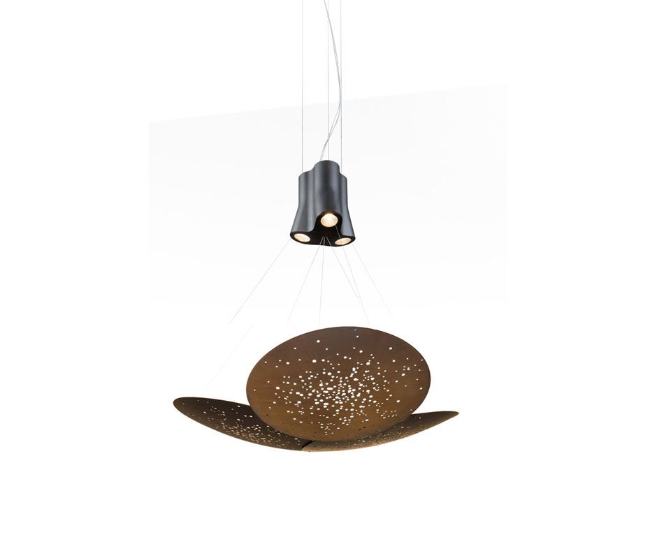 Световой источник в форме линзы, который концентрирует и рассеивает лучи света. Идея создания лампы Lens - соединить, фильтровать и потом рассеить свет необычным способом. Неровный дизайн поверхности линз позволяет рассеивать свет, отражая игру светотеней на нижестоящие предметы. Окружающая среда, в свете новых оттенков, сливается со светящимся источником, создавая единый декоративный элемент. Три линзы, пересекаемые между собой, напоминают соединение между космосом и землей, в котором свет является главным объединяющим элементом.