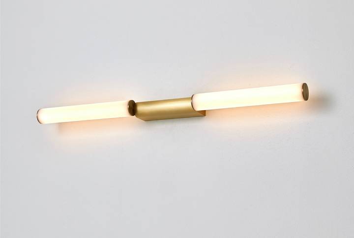 Чистая линия настенного светильника Link вписывается в пространство вертикально или горизонтально. Изготовленный из латуни, этот линейный настенный светильник окружает свет, который он рассеивает.