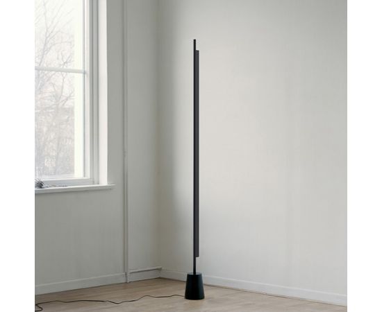 Тонкий вертикальный корпус лампы с формой усеченного конуса базы расширяется с низу, что дает придает тонкости профилю из экструдированного алюминия, в котором скрыты светодиодные лампы. Корпус свободно вращается на основании для легкого направления непрямого света. Светильник практически незаметен, он подойдет для современных интерьеров в стиле hi-tech, он функционален и удобен в использовании.