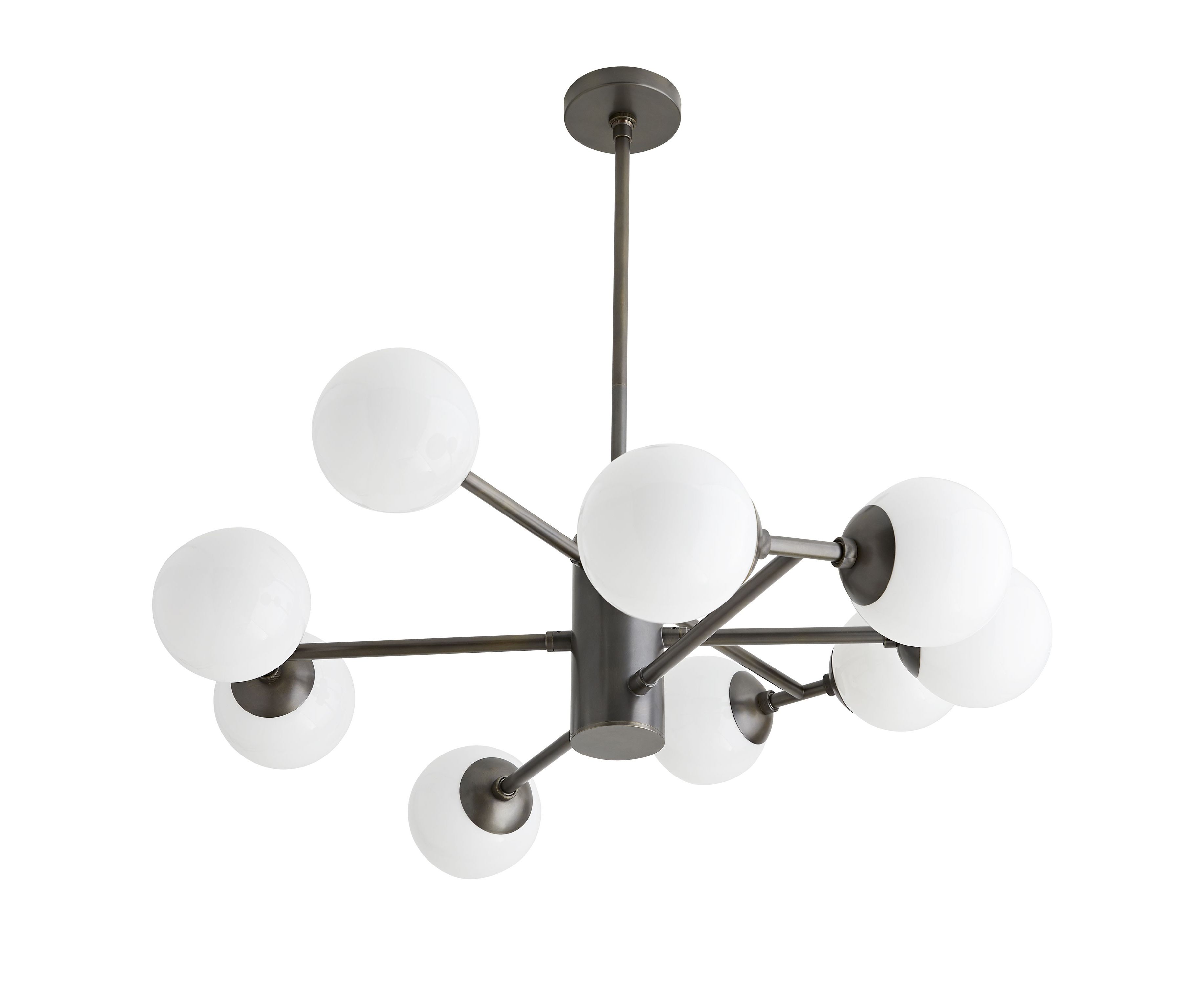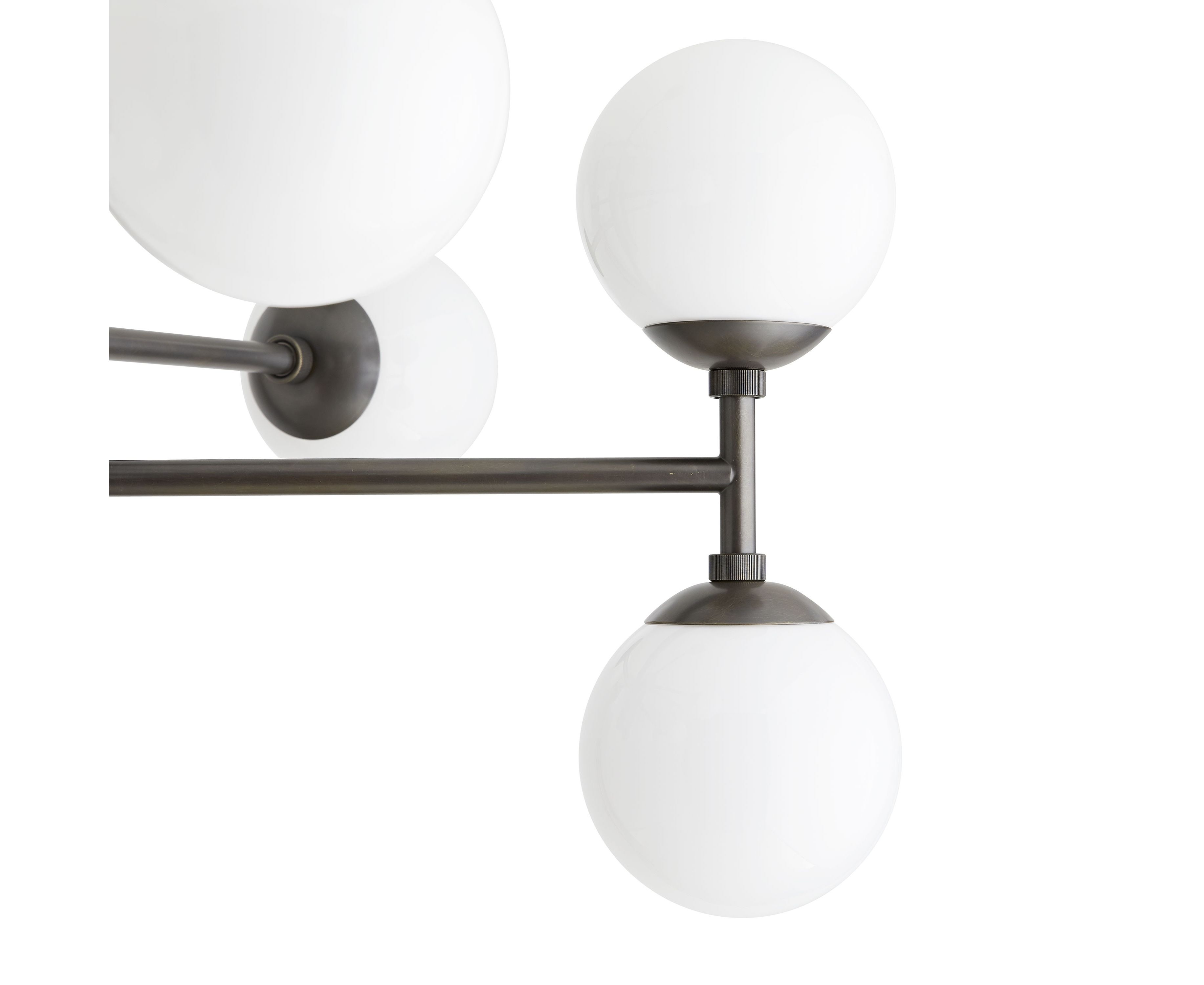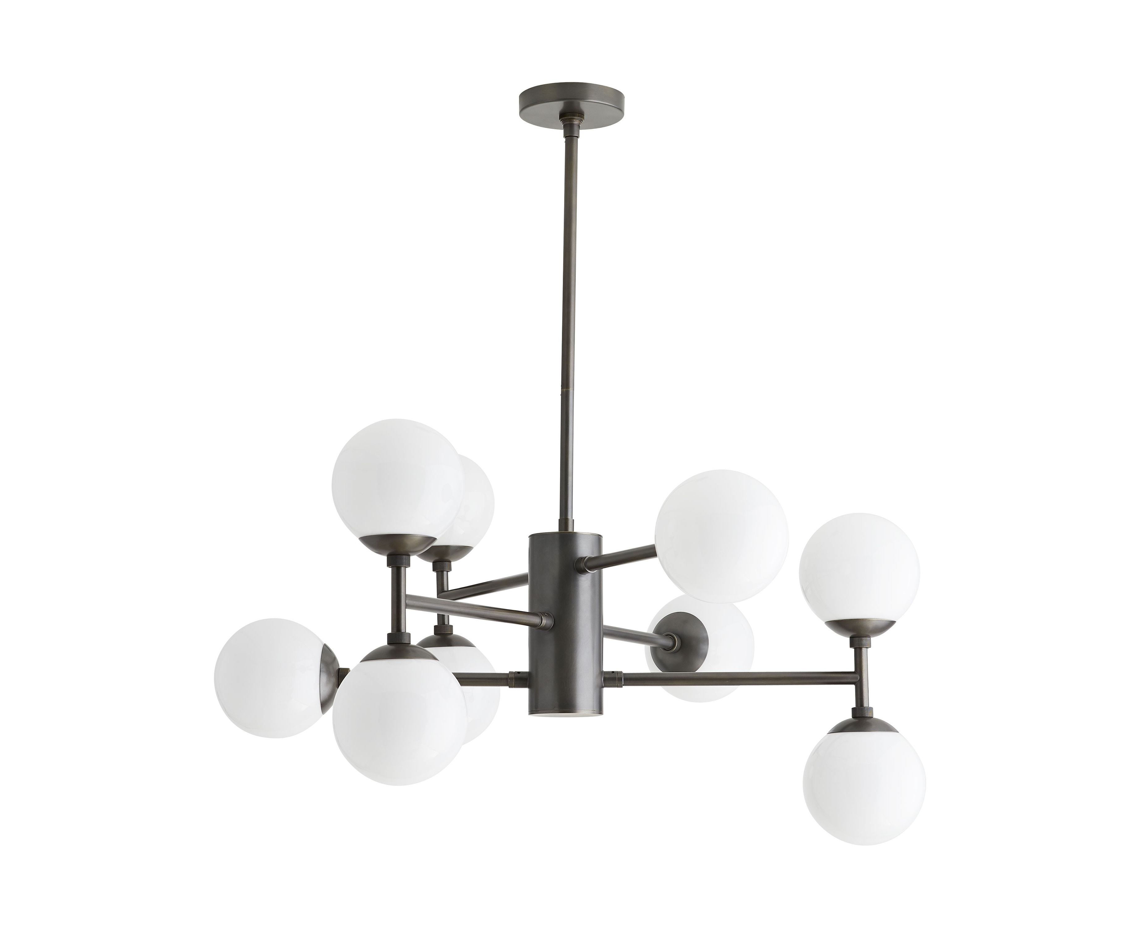 Dudley находит баланс в асимметричном дизайне. Стальная основа имеет отчетливую английскую бронзовую отделку, которая создана из покрытой античной латунью до темной отделки с золотистыми оттенками. Большие опаловые стеклянные шарики простираются от линейных ярусных рычагов, обеспечивая достаточную мощность за большим столом. Более чем модное световое решение для современных помещений.