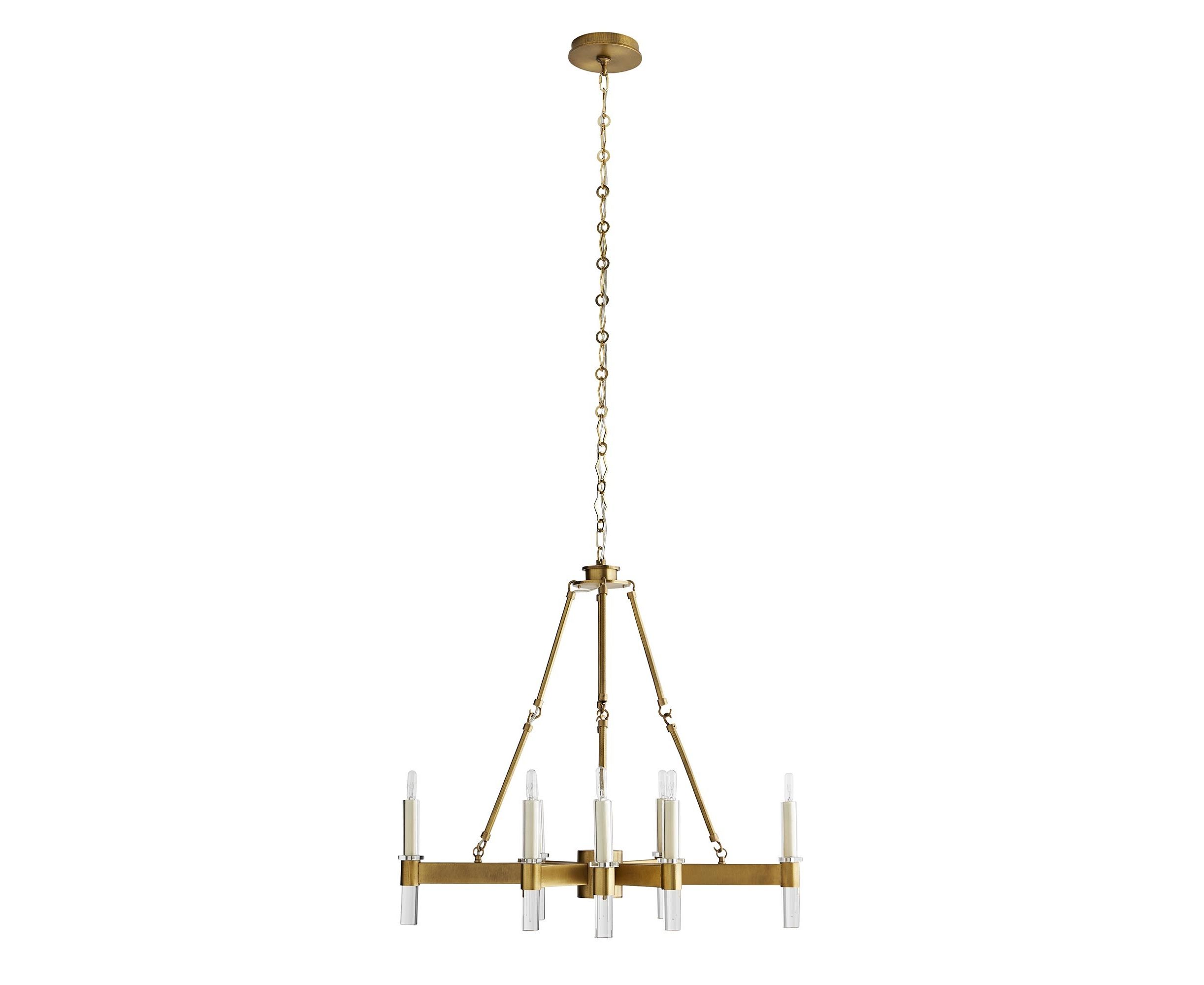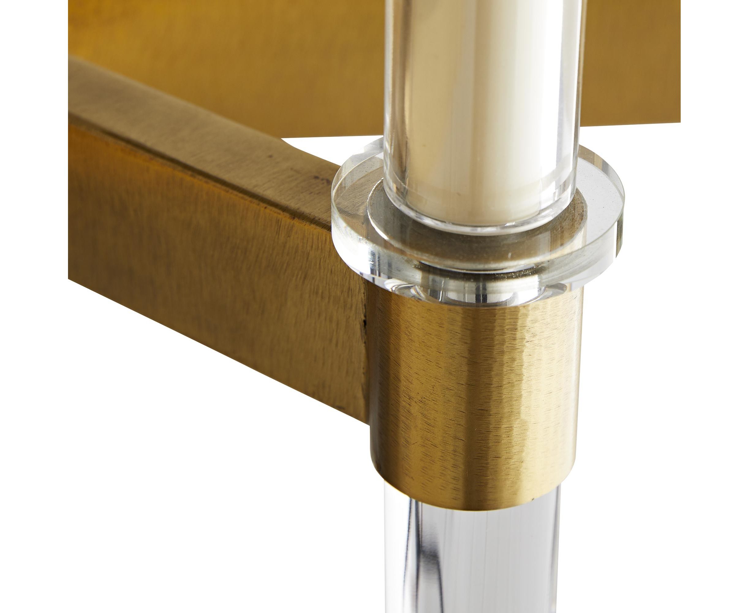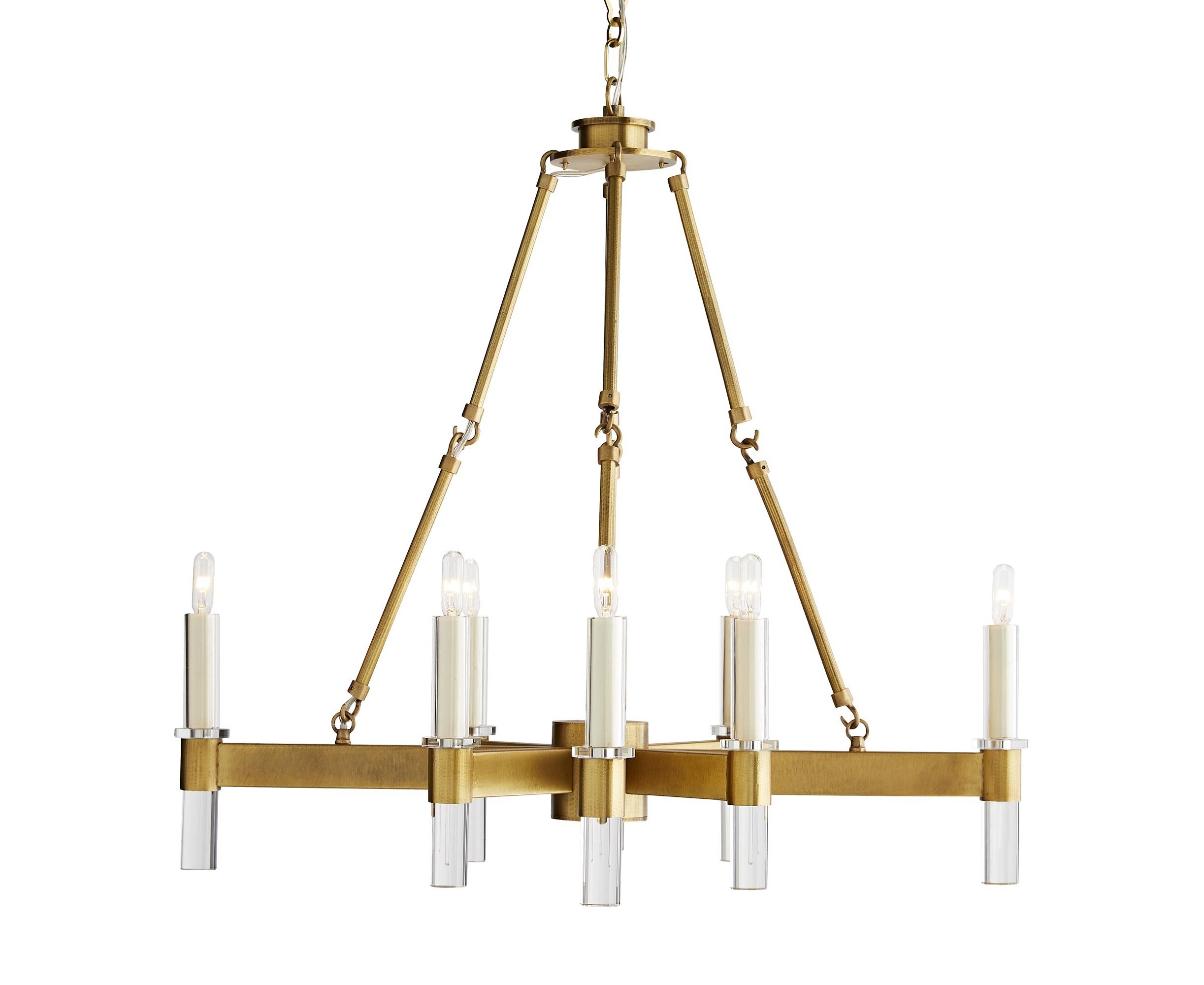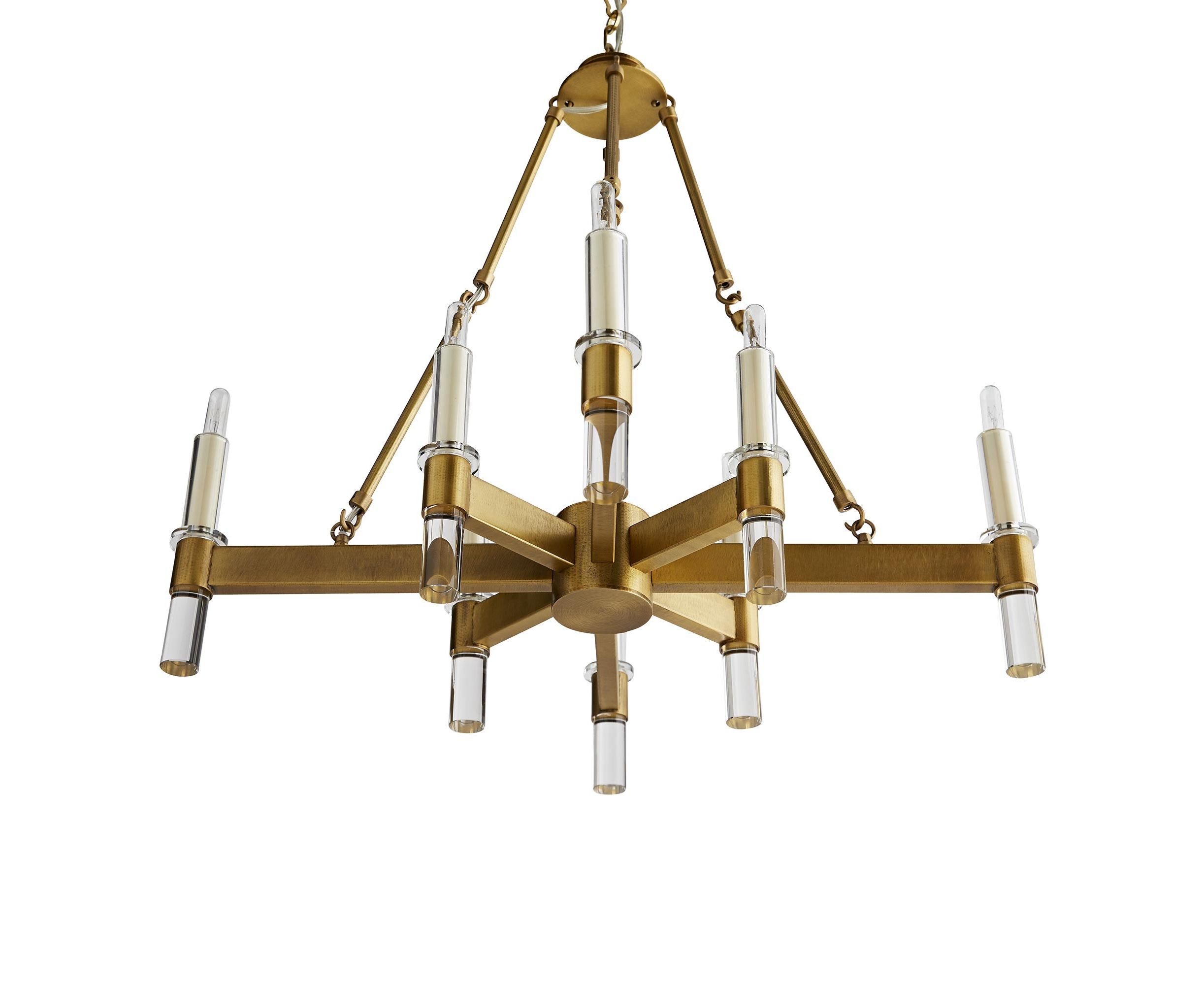Современные желания возглавят этот современный дизайн канделябров. Легкий и воздушный, Griffith владеет упрощенной утонченностью. Подвеска из декоративного металлического прута, стальная рама отделана антикварной латунью и соединена с двухцветными стержнями из слоновой кости / прозрачного хрусталя. Также доступный в затемненной меди (DP89001).
