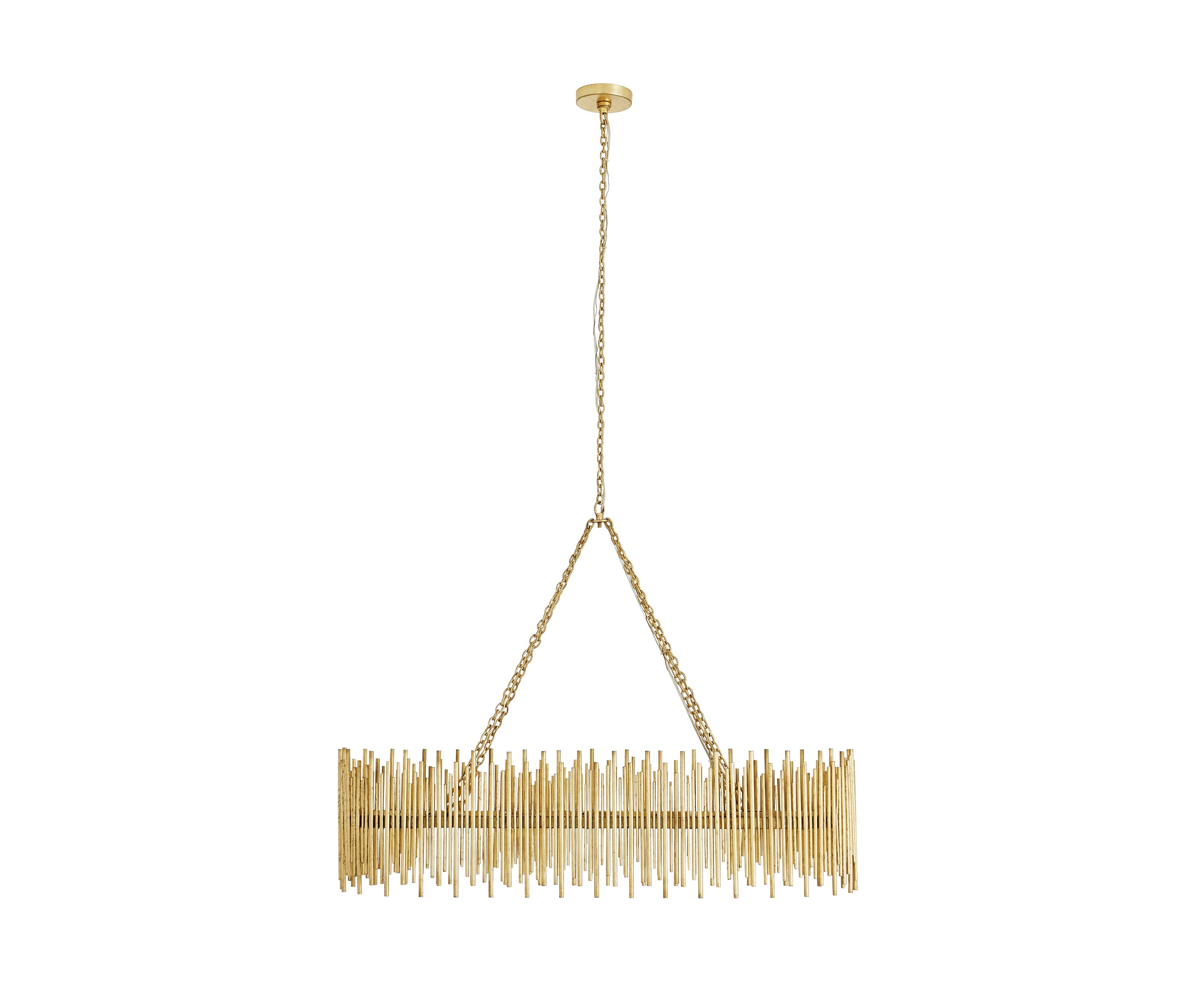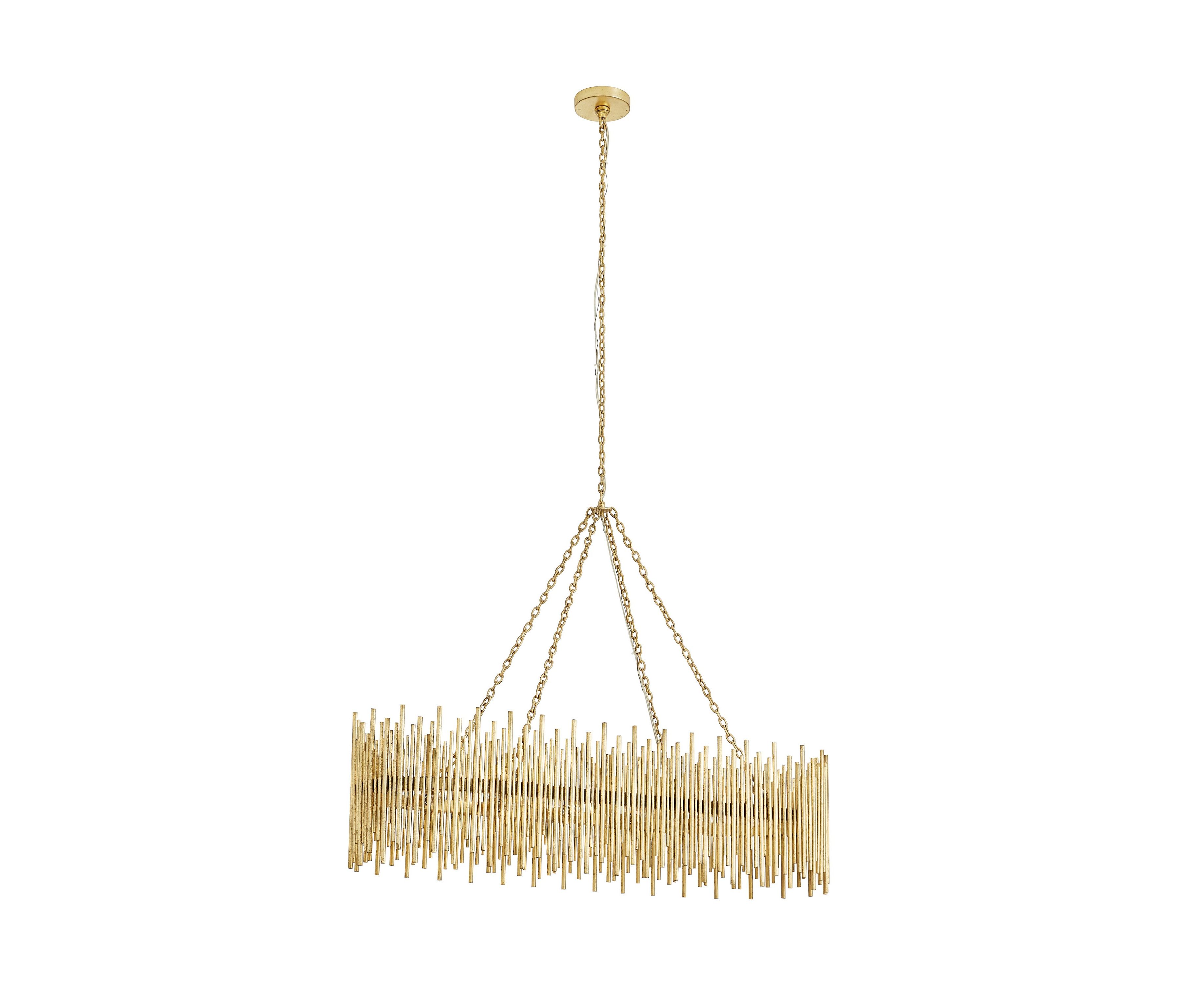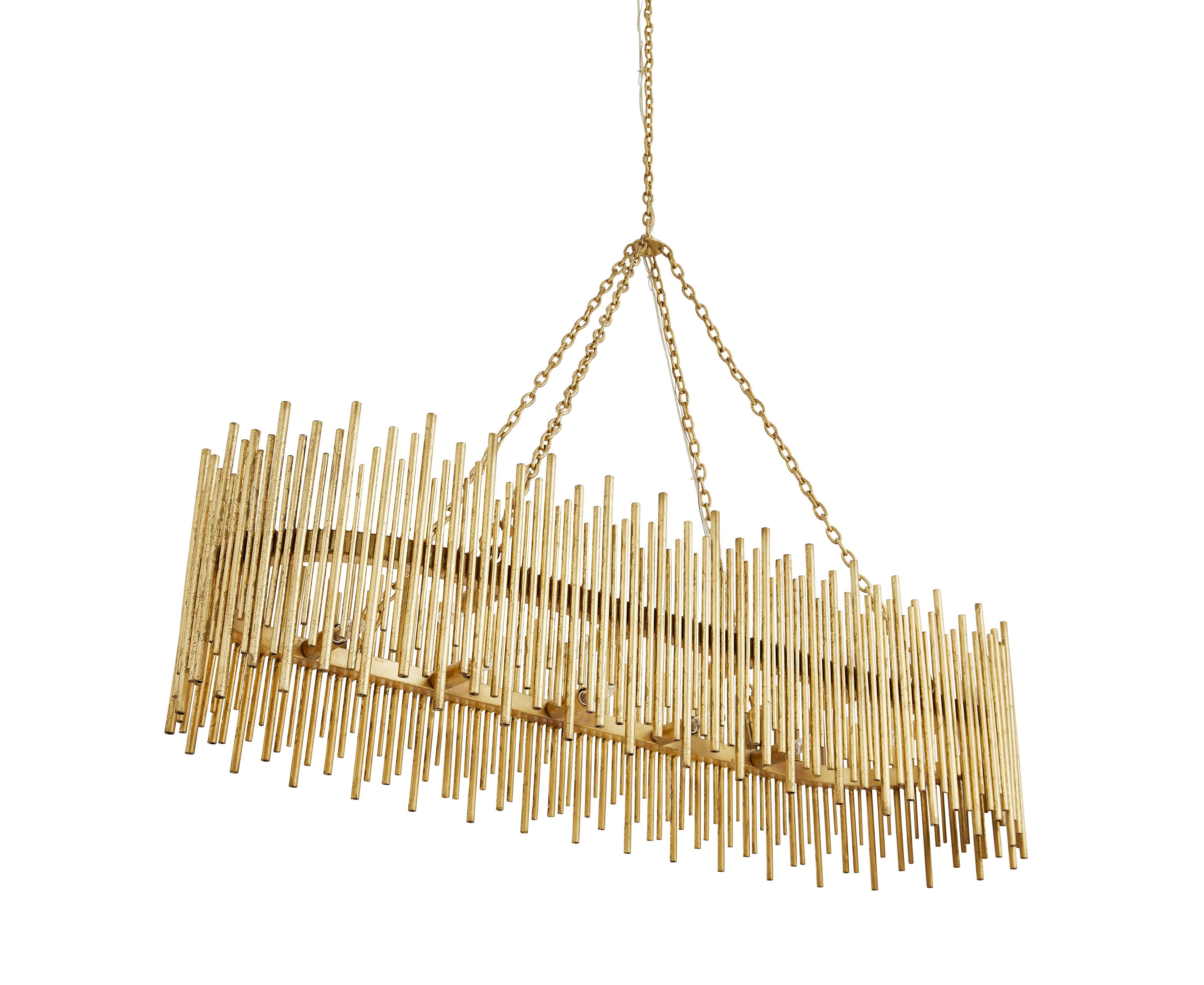 Отдельные железные прутки сварены вместе и обработаны вручную сусальным золотом для создания этой трехуровневой люстры. Весь светильник покрыт сусальным золотом, вплоть до потолочного крепления. Деревенский, но, несомненно, элегантный. Проливает так много света с 10 стандартными лампами. Отделка сусальным золотом может варьироваться.