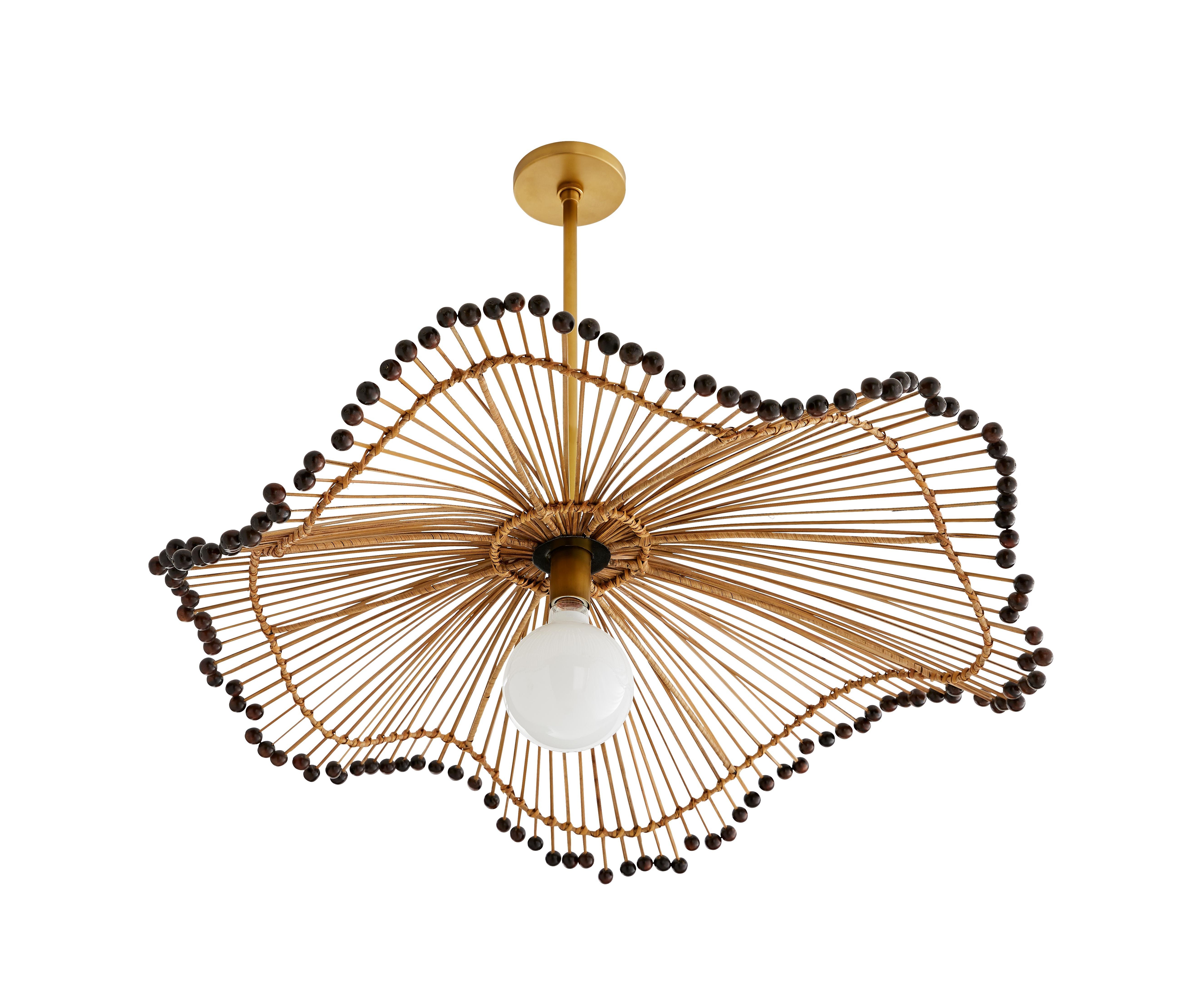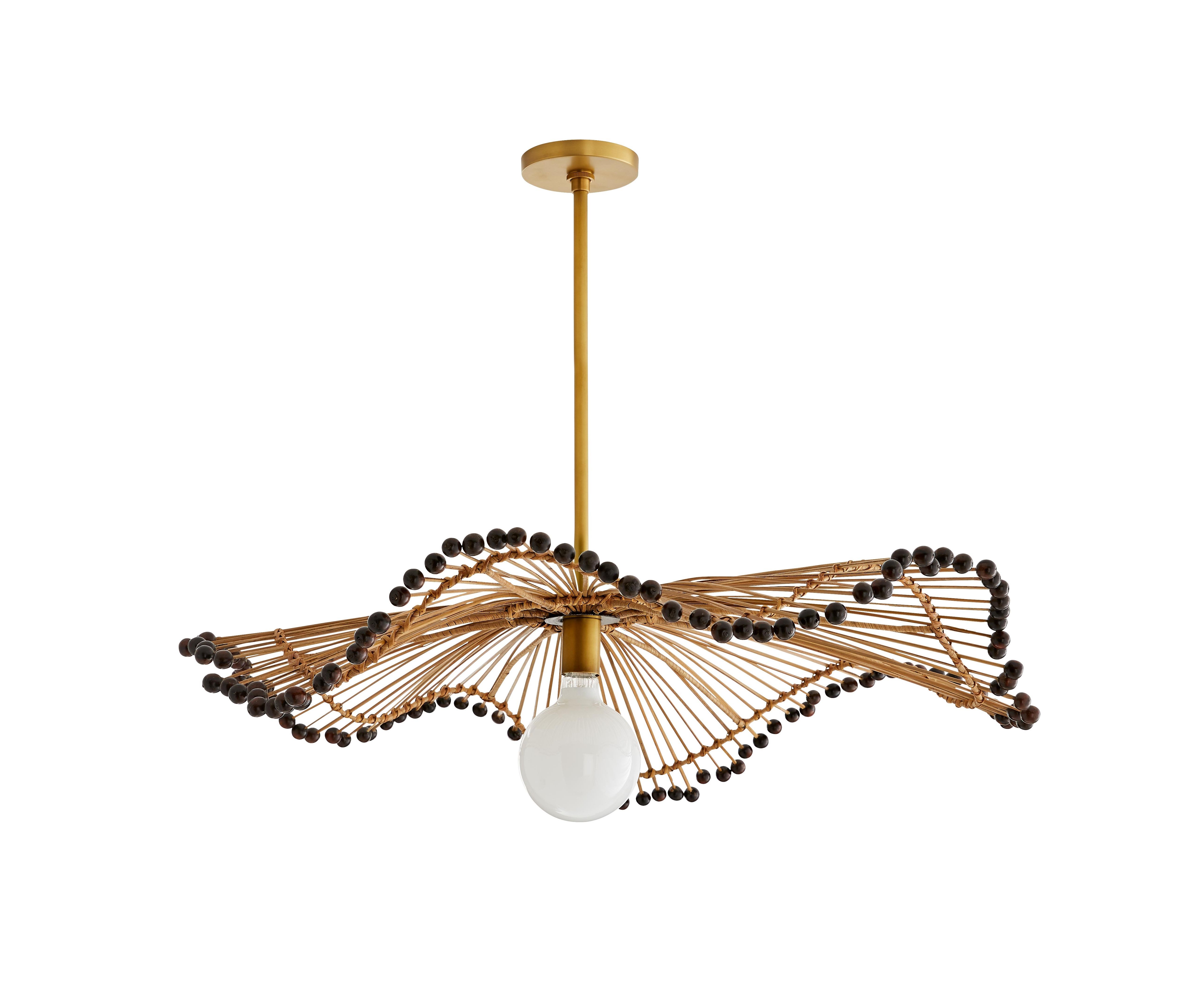 Техника Старого Света привнесена в игру с этим, естественно, уникальным кулоном. Множество палочек бури, связанных тонкими кусочками ротанга, текут из старинного медного стального стержня в волнистую форму, напоминающую зонтик от солнца. Деревянные бусины украшают слегка изогнутую основу, подчеркивая общий дизайн органичной и привлекательной формы. Из-за природы ручной работы возможны небольшие отклонения. Одобрено для использования на крытых уличных площадках.