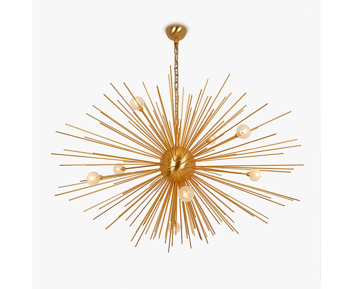 Стадное растение Горгона содержит в себе яркие и красивые перья, но взгляд за пределы его многолетних цветов показывает колючую броню с заостренными копьями. Известные в местном масштабе как Махана, гигантские стеганые листья этого водного персонажа скрывают яркую утреннюю звезду, скрывающуюся под поверхностью воды. Имея в виду изображение этого растения, дизайнеры Bella Figura пришли к дизайну потолочного светильника Makhana, сплошных латунных стержней и стеклянных куполов из пузырьков, чтобы создать впечатляющий демонстрационный ролик.