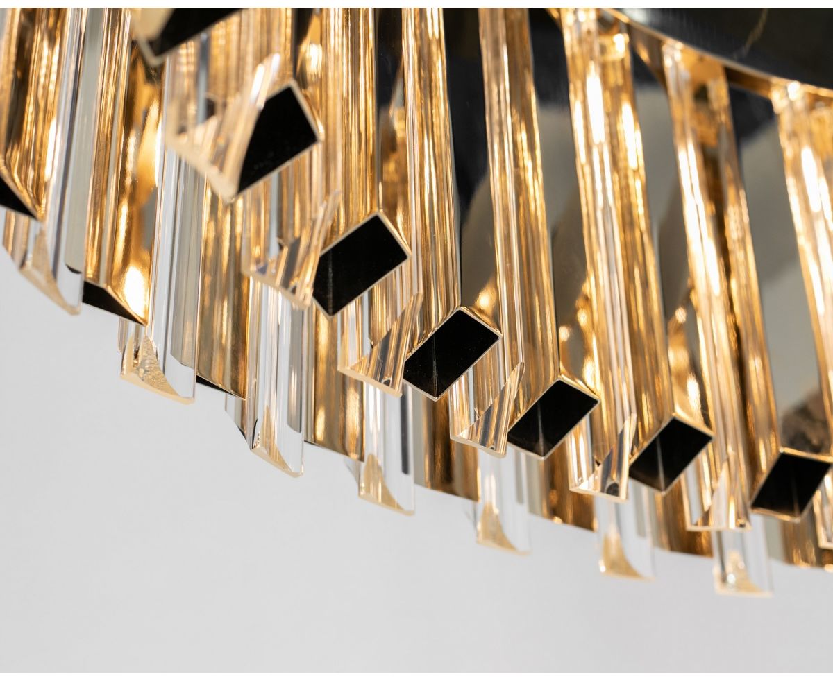 Эта потрясающая люстра из стекла и латуни - «одна на миллион». Созданная, чтобы произвести впечатление, она привносит особую привлекательность и изысканные детали освещения в самые изысканные интерьеры. Художественно выполненные светильники изготовлены из латуни с позолоченным покрытием, визуально разделены гипнотизирующим стеклом.