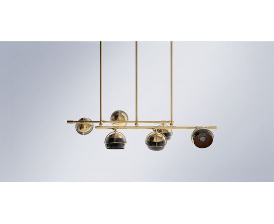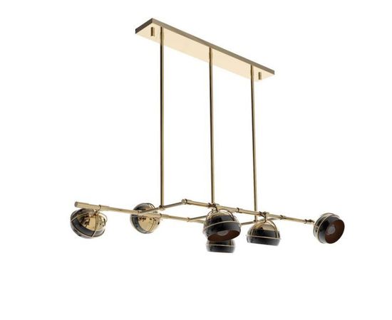 Превращение изысканных современных ламп в чувственные предметы чрезвычайной элегантности. Подвесной светильник Black Widow II, как и все семейство, отражает влияние освещения Stilnovo, которое в основном можно ощутить по его минималистичной позолоченной латунной структуре. Этот современный подвесной светильник также имеет 6 сферических плафонов из лакированного стекла, что делает его универсальным. Подвесной светильник Black Widow II - это великолепное изделие, которое, несомненно, будет прекрасно освещать вашу столовую.