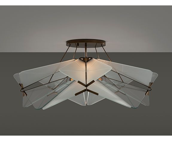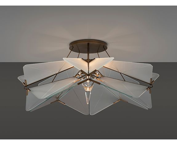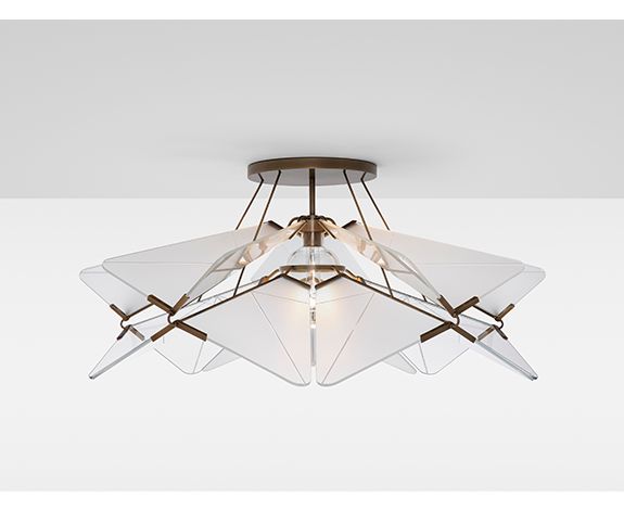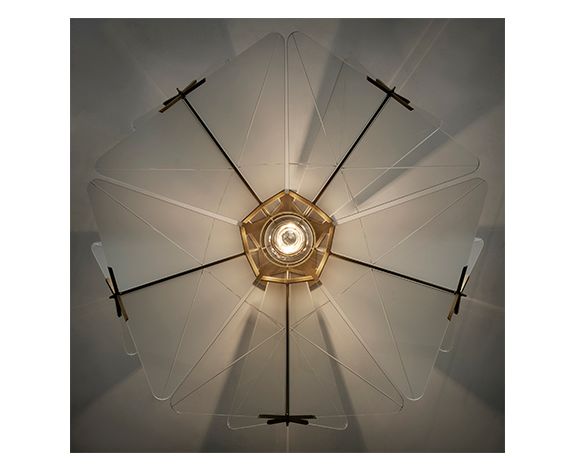 На коллекцию Bloom влияет жизненный цикл цветка и его анатомия. Деликатно удерживаемая внутри бронзовой арматуры, каждая деталь состоит из единого твердого, выдувного стекла, содержащего источник света. Свет окружен и защищен панелями с гравировкой из прозрачного и стекла кислотного травления, которые указывают на прожилку лепестка. Комбинация материалов создает рентгеновское качество при освещении, и форма кажется невесомой, когда она трансформируется из дня в ночь.