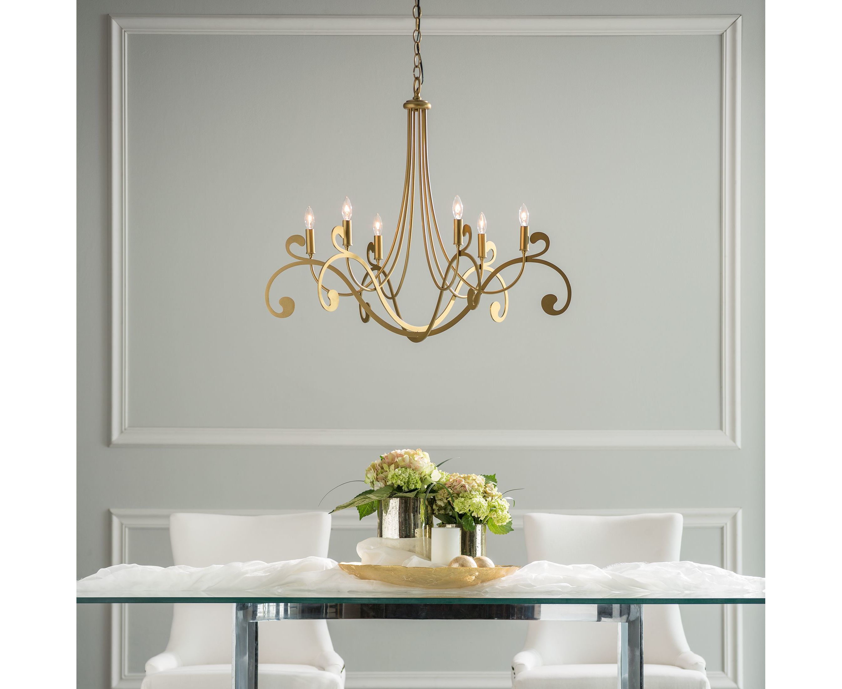 Легкомысленная элегантность определена в люстре Bella 6 Arm Chandelier. Красивая и изысканная, Bella предлагает свежий взгляд на традиционный стиль люстры. Открытые лампочки канделябров держатся высоко - поддерживаются стальными завитками на ваш выбор из восьми вариантов отделки. Если вы ищете блеск гламура, люстра Stella, украшенная изысканными кристаллами от Swarovski, подарит зрителю дополнительный элемент блеска.
