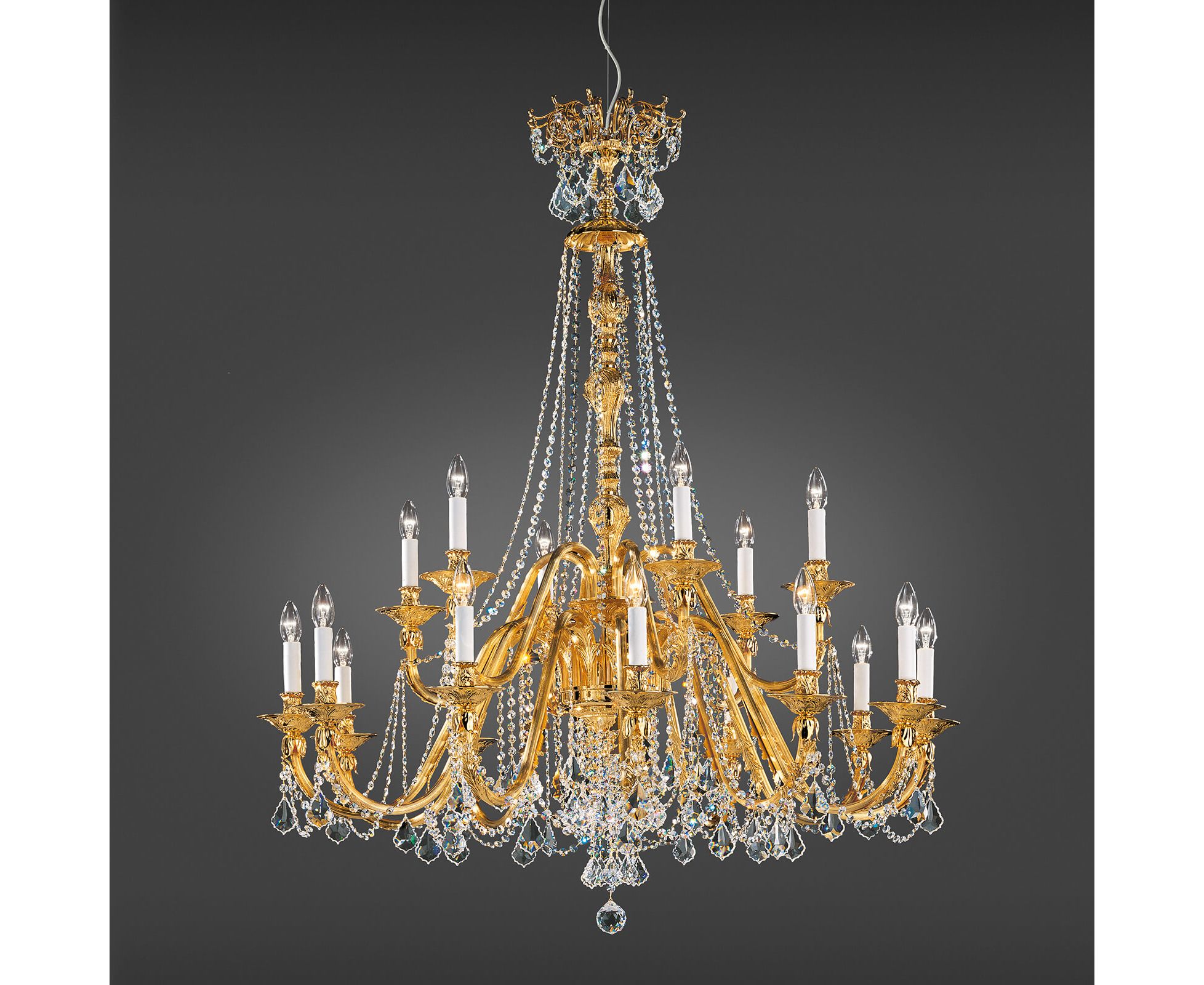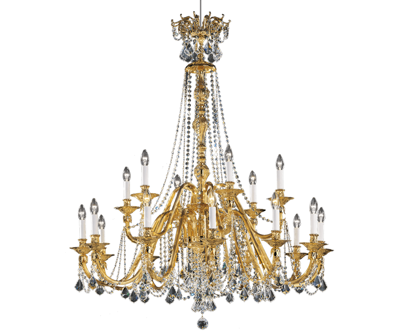 Люстра из металла с золотой отделкой и подвесками Swarovski Elements. Доступны в разных размерах и цветах. Коллекция Opera Classic.