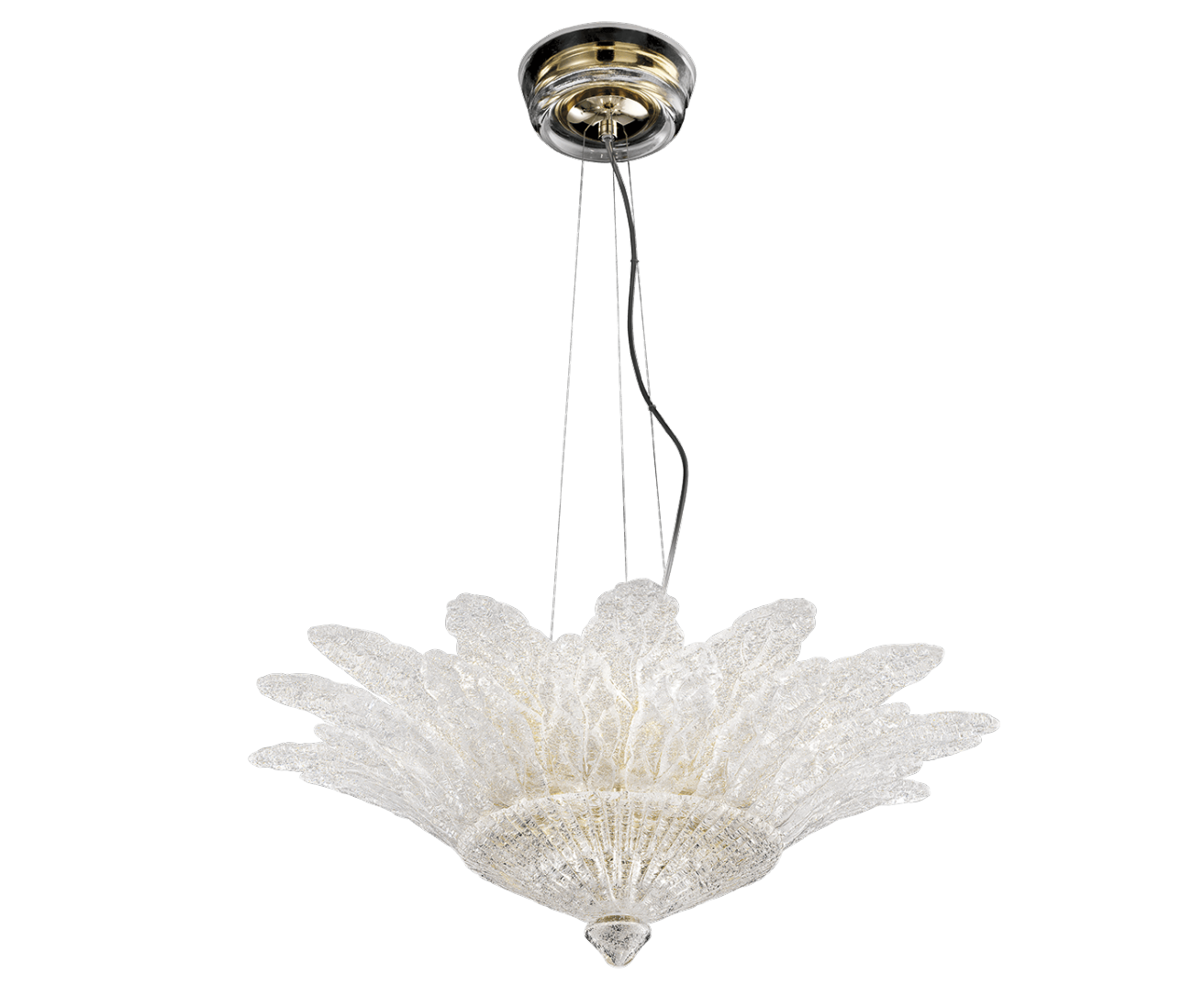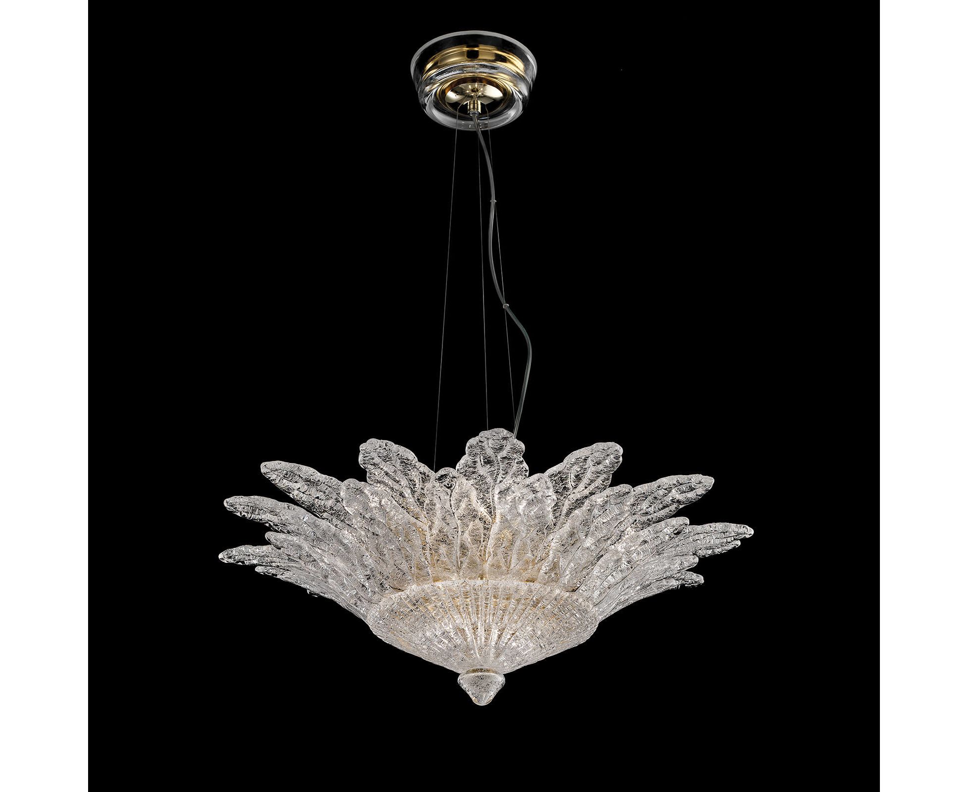 Потолочный светильник с прозрачными и позолоченными стеклянными листочками, металл с золотой отделкой. Доступны в разных размерах и цветах. Коллекция Opera Classic.