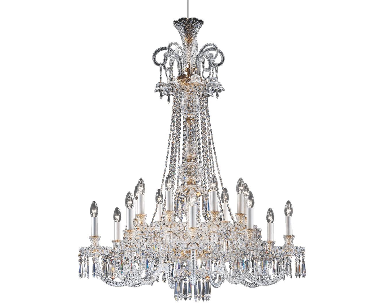 Люстра из резного хрусталя, металл с золотой отделкой, подвески Swarovski Elements и декоративные стеклянные цветы. Доступны в разных размерах и цветах. Коллекция Opera Classic.