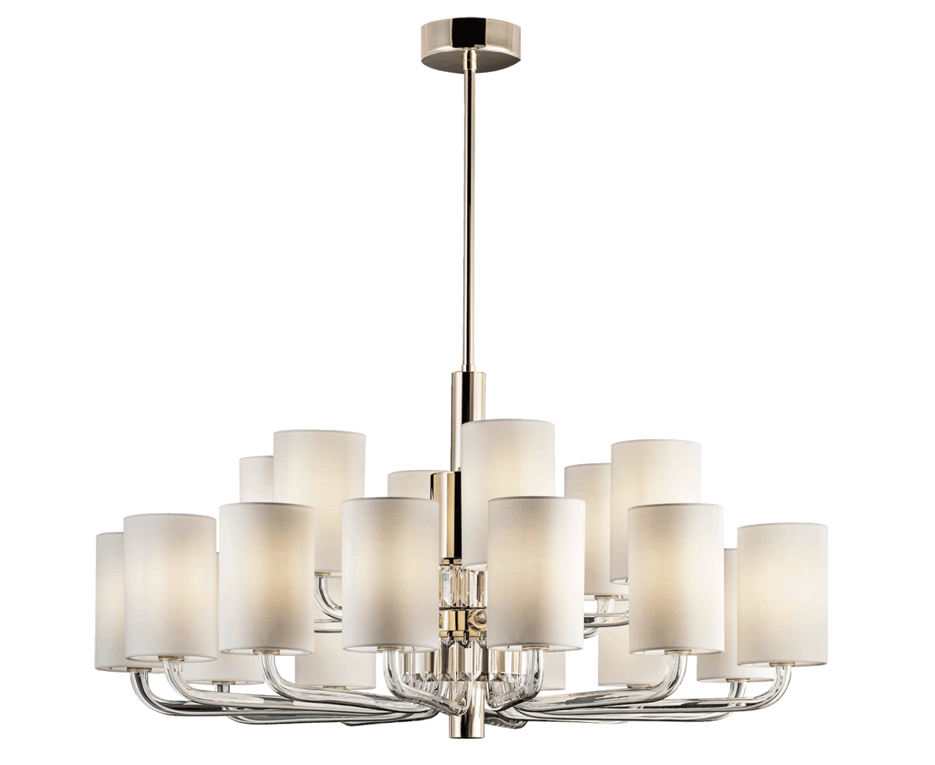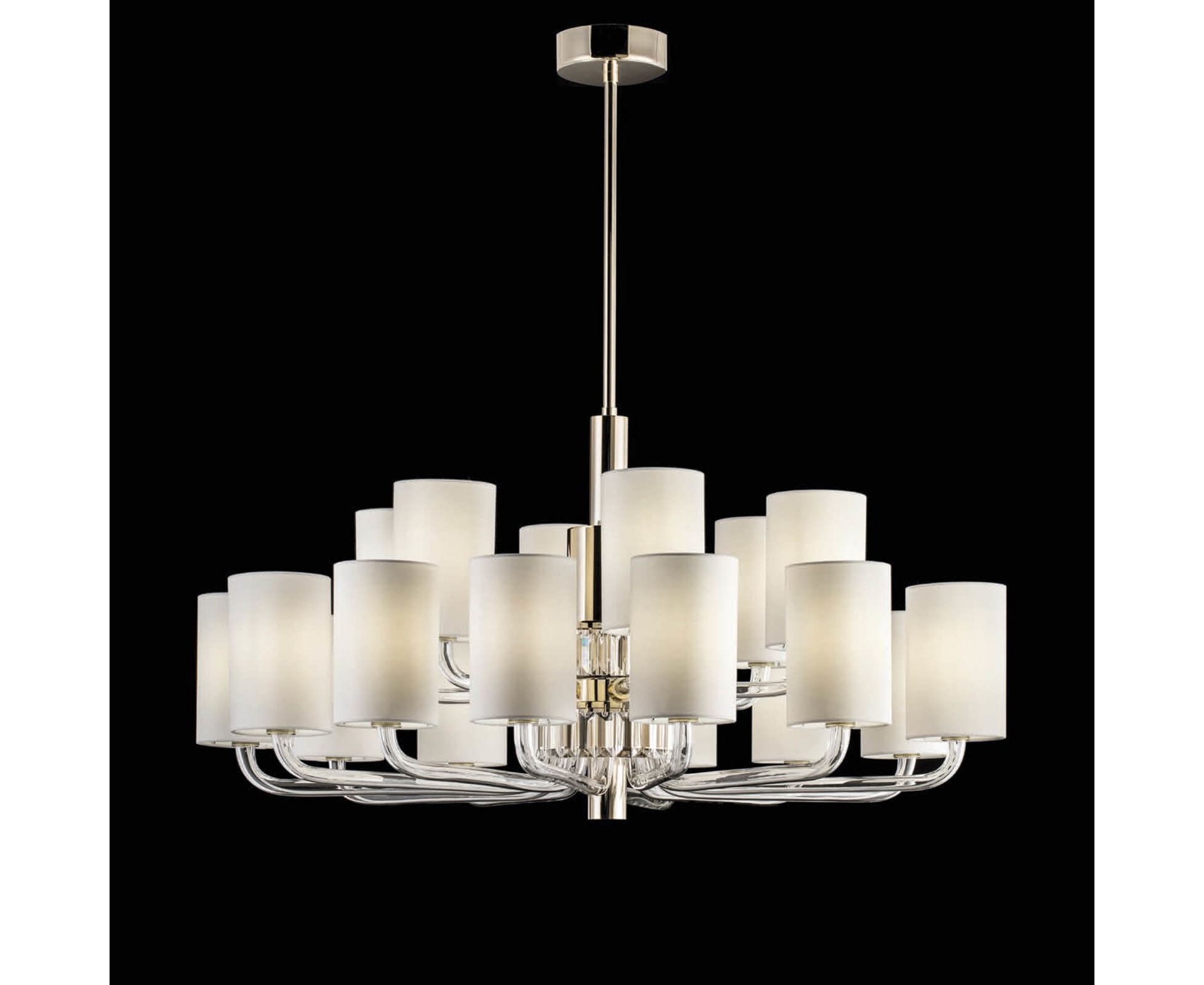 Люстра из металла с отделкой из светлого золота с тканевыми абажурами. Капли из Swarovski Elements. Доступны в разных цветах и размерах. Классический каталог Opera.
